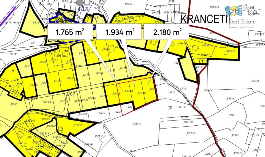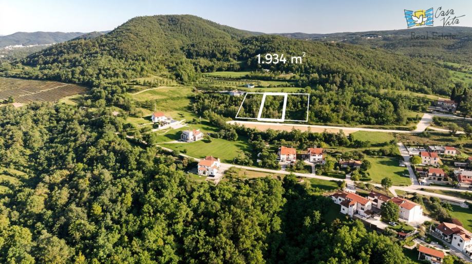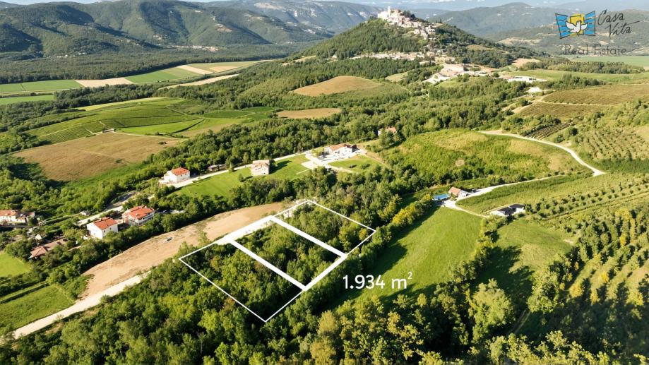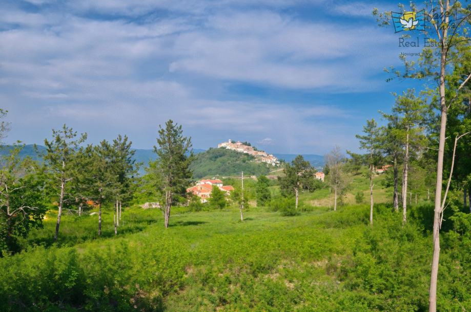 U srcu Istre, na padini s koje se pruža prekrasan pogled na Motovun, prodaje se građevinsko zemljište površine 1934 m2. Idealno za izgradnju luksuzne vile s bazenom, ovo zemljište nalazi se na samo 1,5 km od čuvenog Motovuna i ima osiguran pristup struji i vodi. U blizini se nalaze renomirani vinari, vrhunski restorani i čuvena biciklistička staza Parenzana.