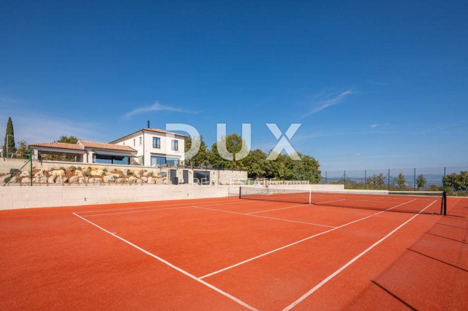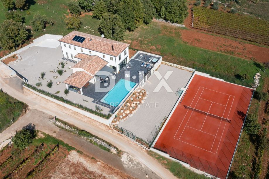 Estetski dizajnirane sobe nude maksimalnu privatnost nakon dana ispunjenog događajima. Spa zona u podrumu nekretnine, dostupna izvana, obećava čiste trenutke opuštanja uz saunu i kupku u neposrednoj blizini, čak i tijekom zimskih mjeseci. Uz impresivan interijer, golemi vanjski prostor s privatnim teniskim terenom s umjetnom travom (odobreno od ATP-a) i mnogi drugi detalji naglašavaju ekskluzivnost i sofisticirani karakter ove vile. Impresivan infinity bazen površine 78 m2 s rol pokrivačem, kao da se neprimjetno stapa s krajolikom i posebno je privlačan u vrućim ljetnim danima za ugodno osvježenje, dok natkrivena ljetna kuhinja poziva na druženje na otvorenom. U udobnom vanjskom salonu i u jacuzziju možete uživati u živopisnoj igri boja netaknute prirode s pogledom na Motovun i okolna brda te završiti dan uz opuštajuću čašu istarskog vina s obitelji i prijateljima.