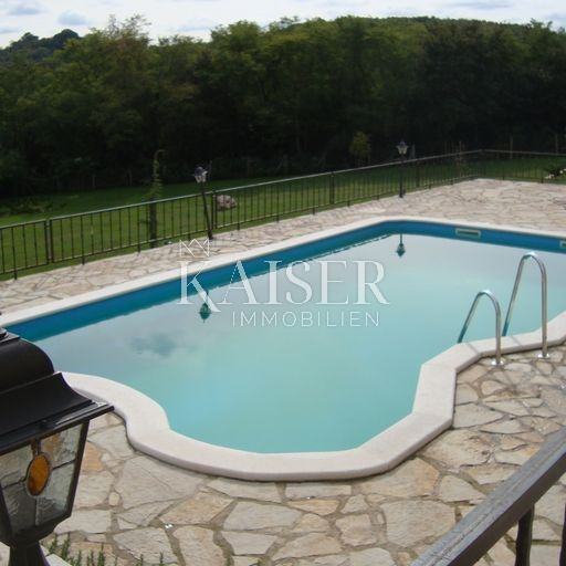 U središtu okućnice od 887m2 smješten je bazen veličine 40 m2 sa uređenim sunčalištem sa kojega se pruža lijepi pogled na okolnu prirodu i zelenilo. Lokacija nekretnine nudi mir i tišinu u netaknutoj prirodi te savršen bijeg od užurbanog načina života. Od ovog malog mjestašca između Pazina i Motovuna imate 30 minuta vožnje do svih većih gradova u Istri, te istu udaljenost do istočne i zapadne obale Istre.