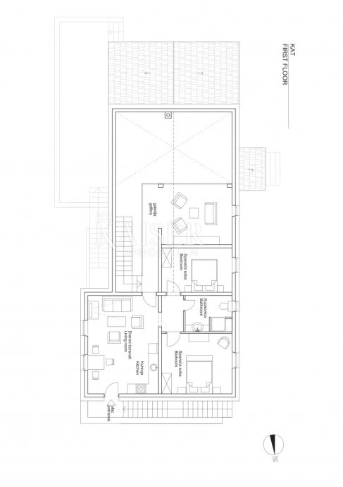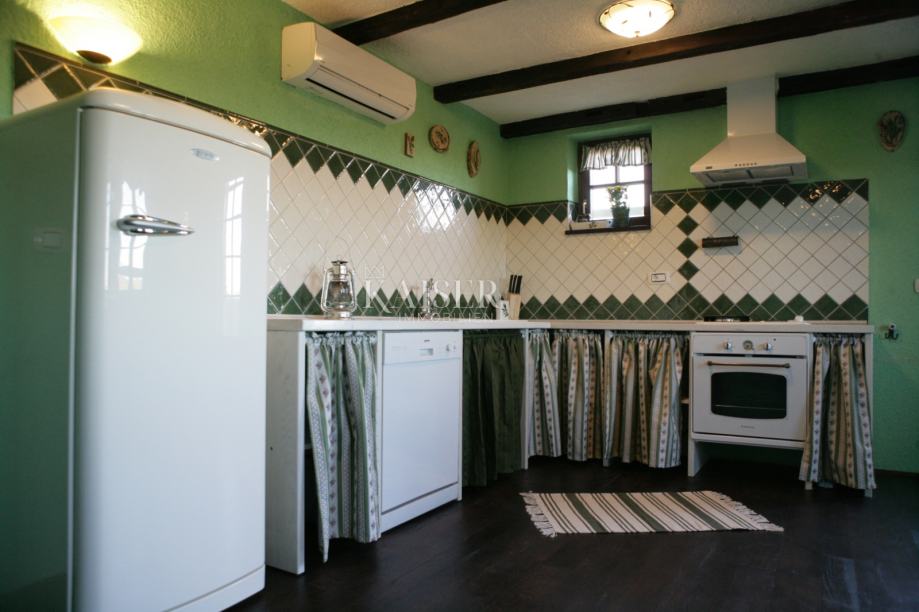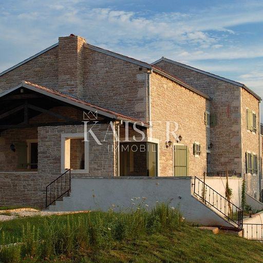 Tradicionalno dizajnirana istarska kamena kuća je katnica sa podrumom, prizemljem i katom sveukupne površine 323 m2. U podrumu je smješten veliki vinski podrum, praonica, garderoba te dva toaleta. Tu se nalazi i wellness zona sa saunom. Prizemlje je koncipirano kao otvoreni prostor koji obuhvaća blagovaonicu sa barom i kuhinjom te manji apartman koji ima i zaseban ulaz a gdje je smještena spavaća soba sa vlastitom kupaonicom te dnevni boravak i kuhinja. Na katu se nalazi još jedan manji apartman koji također ima zaseban ulaz a koji obuhvaća dvije spavaće sobe, kupaonicu, dnevni boravak i kuhinju s blagovaonicom. Sve prostorije u kući su klimatizirane a provedeno je i podno električno grijanje u svim kupaonicama.