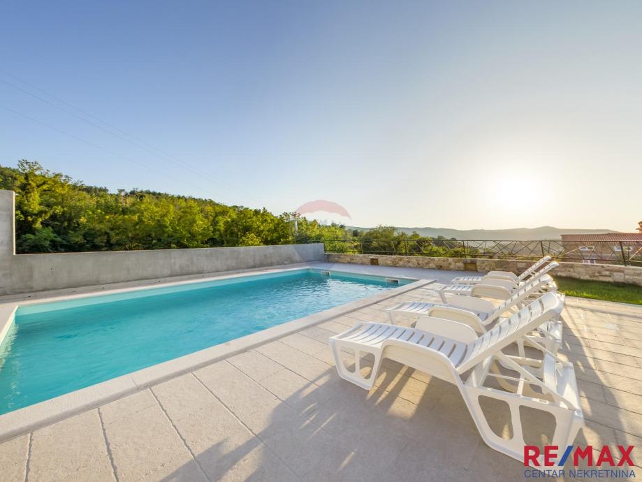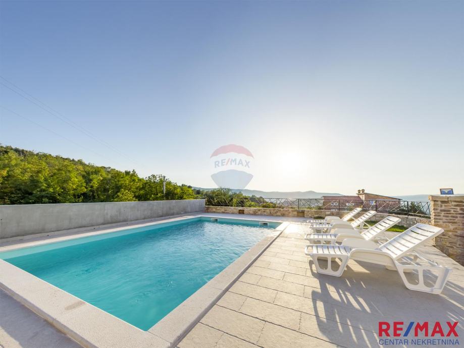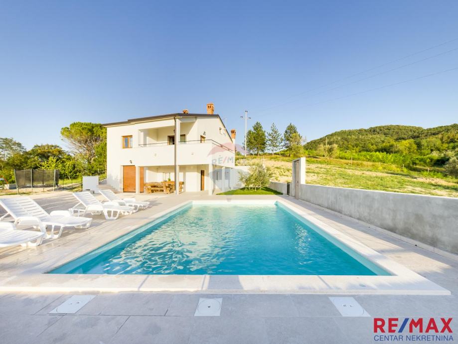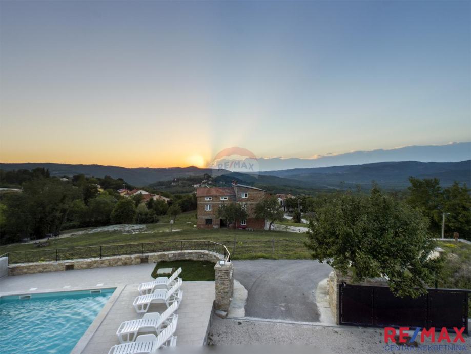Kuća je samostojeća, veličine 240 m2, sa bazenom od 34m2, smještena na prostranoj okućnici od 1848 m2. Izuzetno zanimljiva i mirna lokacija okružena raskošnom bujnom vegetacijom. U blizini nadaleko poznatog mjesta Motovuna. U blizini su nadaleko poznati vinari, vrlo kvalitetna gastro ponuda, šetnice kroz atraktivne motovunske šume, biciklističke staze, trgovine, banke, škola, vrtić, svi se zanimljivi sadržaji nalaze u neposrednoj blizini. Kuća je smještena na brežuljku tako da se sa nje pružaju beskrajni vidici na prelijep okoliš i prostrano okruženje. Kuća se sastoji od prizemlja i kata. U prizemlju se nalazi kotlovnica, te taverna, dok su se na katu smjestile 3 spavaće sobe, velika open space blagovaonica i kuhinja s izlazom na veliku terasu, te kupaonica i toalet. Grijanje je u kući centralno, a hlađenje riješeno putem klima jedinica. Kuća se prodaje kompletno namještena, te predstavlja vrlo interesantnu investiciju za ljubitelje mirnih , intimnih lokacija...
