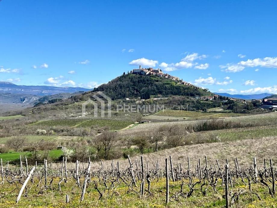 Istra, Motovun, prodaje se poljoprivredno zemljište, blagog nagiba, površine približno 9000 m2 koji se trenutno nalazi u prostoru namjene za vinogradarstvo. S parcele se pruža otvoreni pogled na Motovun a većim dijelom je okružena vinogradima poznatih istarskih vinara. Do parcele vodi asfaltirani put a nedaleko od parcele su prve kuće.