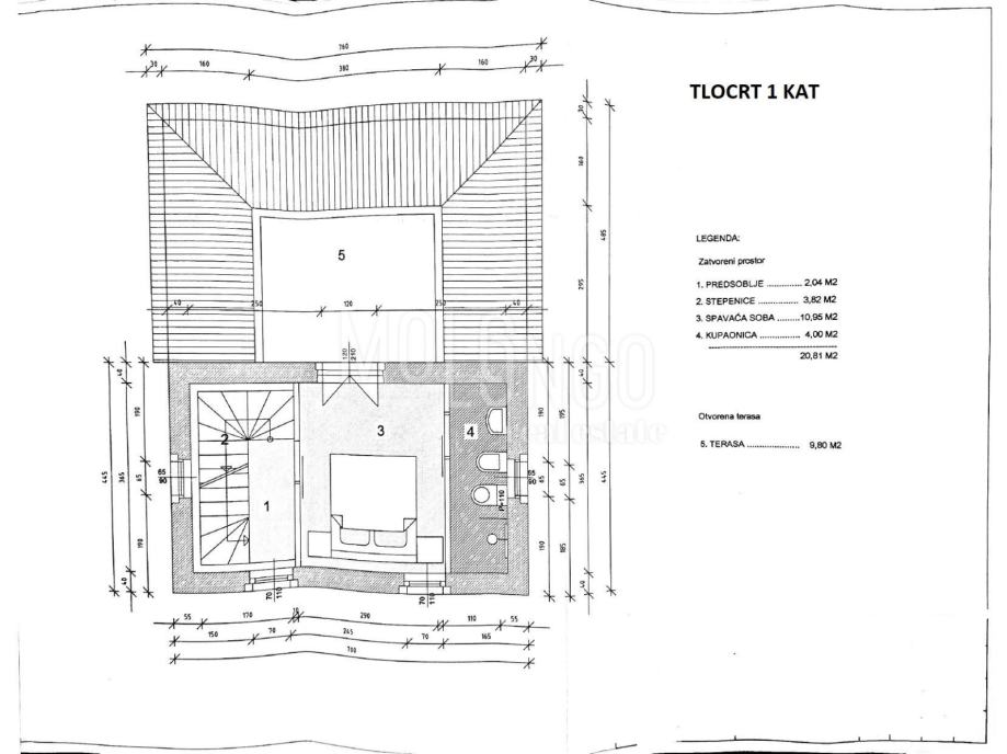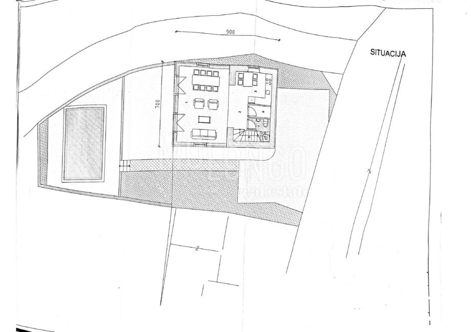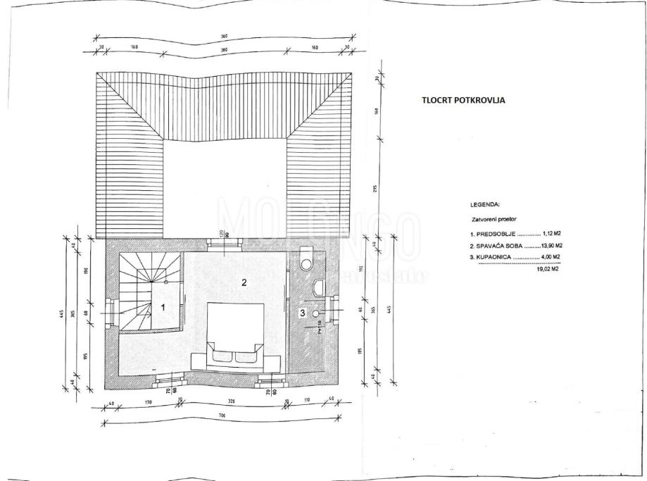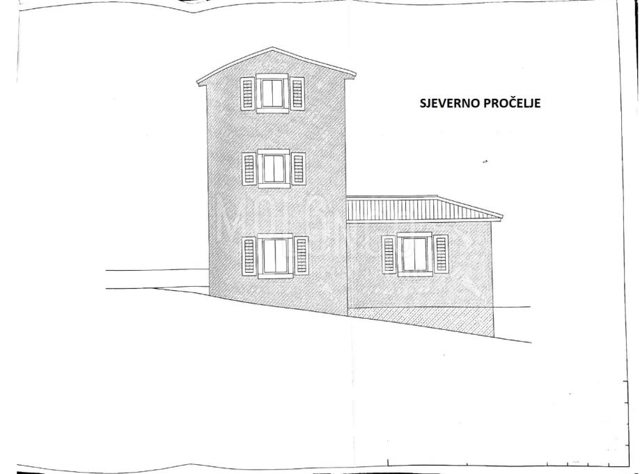 S obzirom na glavni projekt za kuću površine 90 m2 (prizemlje, kat i potkrovlje) s bazenom, ova nekretnina predstavlja izuzetno zanimljivu investicijsku priliku.