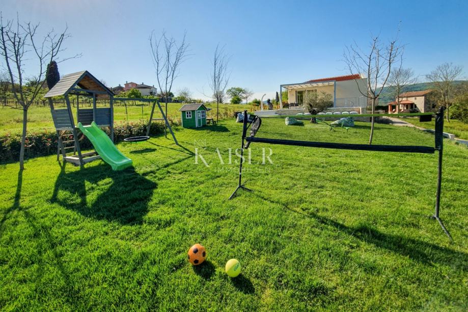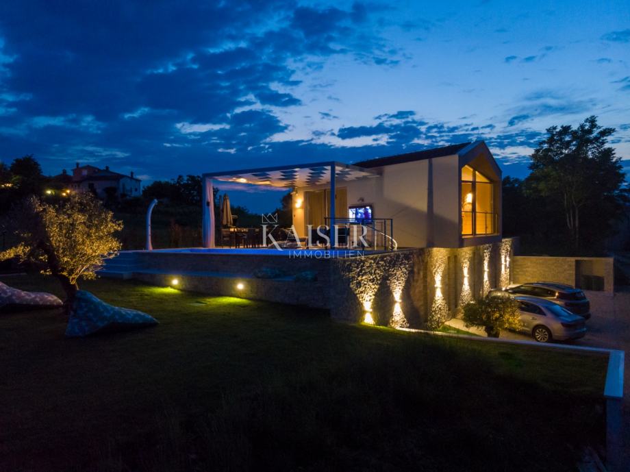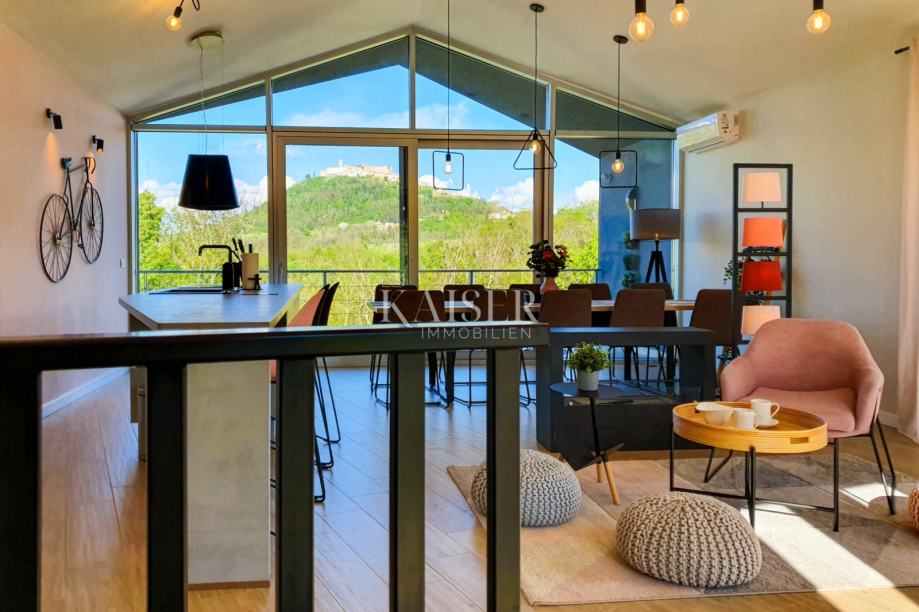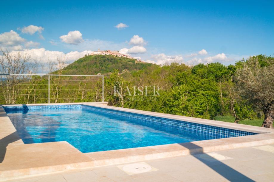 Kaiser Immobilien vam predstavlja prekrasnu modernu vilu s panoramskim pogledom na Motovun i čarobnu istarsku prirodu koja ga okružuje. Smještena svega nekoliko kilometara od samog srca ovog povijesnog gradića, vila pruža idealan spoj privatnosti i aktivnog načina života.