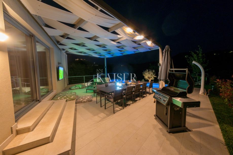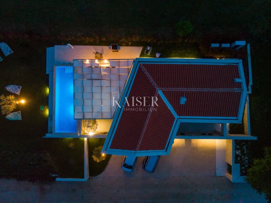 Villa je opremljena suvremenim sustavom podnog grijanja putem dizalica topline, dok klima uređaji u svim prostorijama omogućuju ugodnu temperaturu tijekom cijele godine. Korišteni su vrhunski materijali i oprema, a arhitektonsko rješenje savršeno se uklapa u prirodni okoliš, pružajući osjećaj harmonije i elegancije.