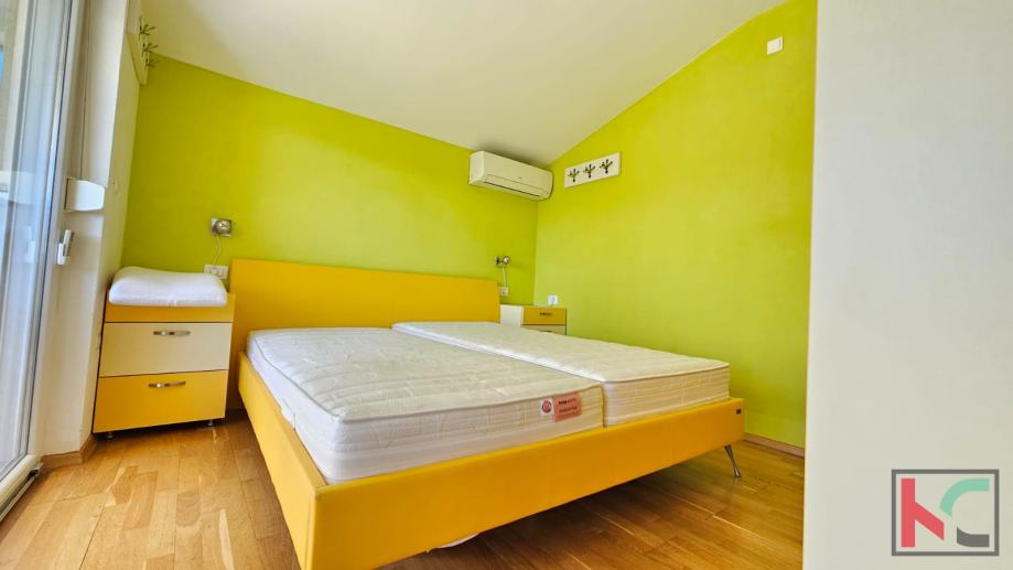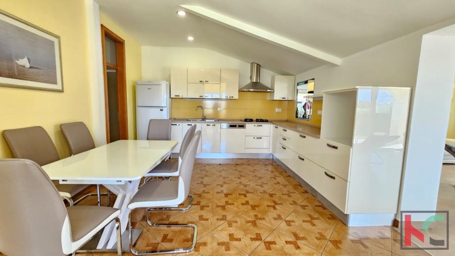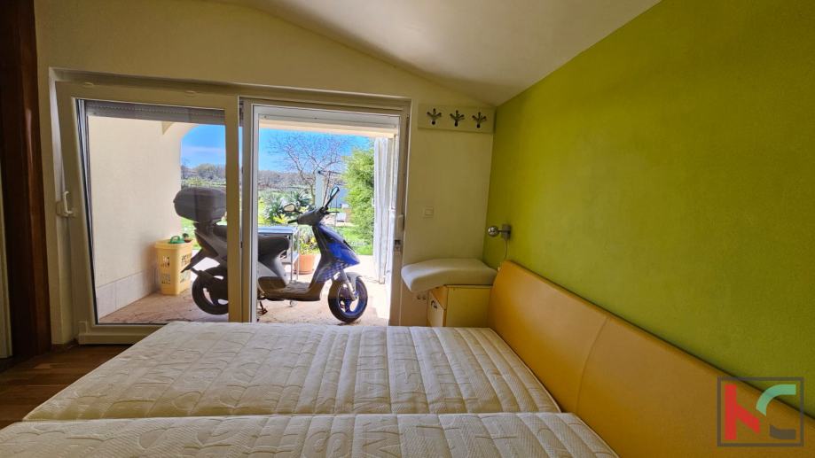 Kuća ima jednu spavaću sobu i orijentirana je prema jugu i zapadu, što omogućuje obilje prirodne svjetlosti tijekom cijelog dana. Uz vrlo malo preinaka, moguće je dobiti još jednu spavaću sobu sa prozorom i puno svjetla. Unutrašnjost kuće je moderno opremljena, uključujući potrebne elektrouređaje i sav namještaj. Kuća također ima spremište i terasu, savršeno mjesto za opuštanje i uživanje u sunčanim danima.
