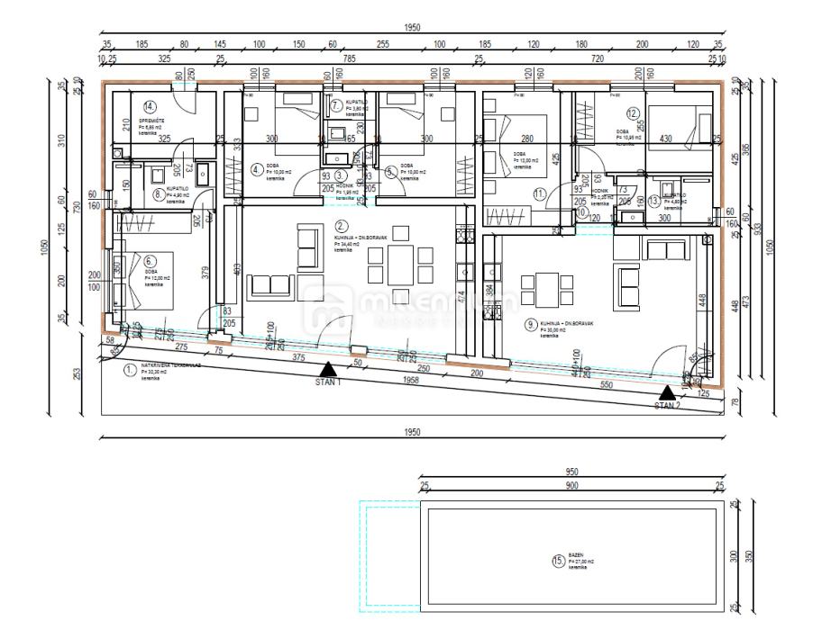 Ova vila je prizemnica površine 176.15m2 s dvije stambene jedinice, zamišljeno da djeca ili gosti imaju dio prostora za sebe.