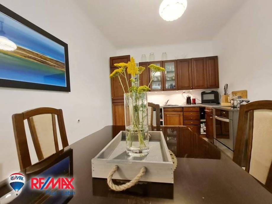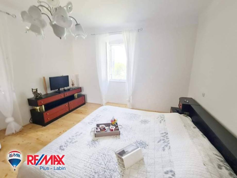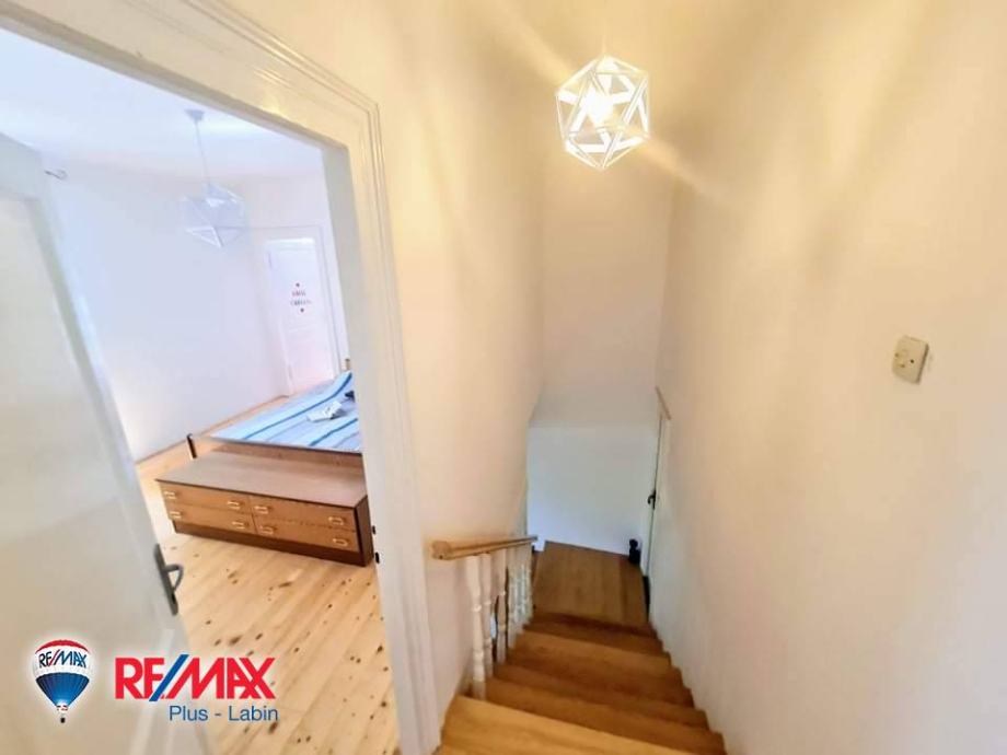 Kuća se nalazi u središtu mjesta udaljeno od Labina 5 km, a do plaže (Rabac) 10 km.