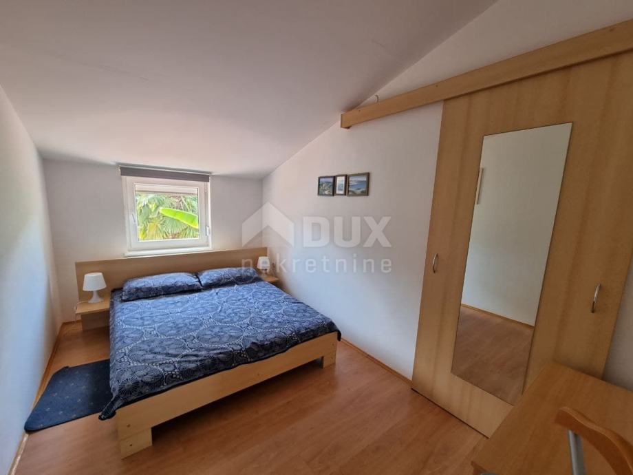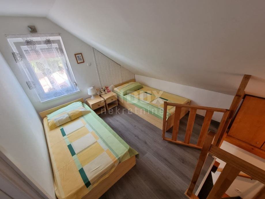 Svega 200 metara od mora smjestila se apartmanska kuća veličine 236m2. Kuća se sastoji od 3 apartmana i ima 7 spavaćih soba, 3 kupaone, 3 dnevna boravka, terasu i raskošno dvorište. Grijanje kuće plinsko centralno, a voda ima sistem solarnog grijanja.