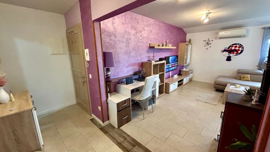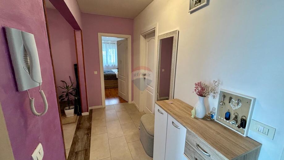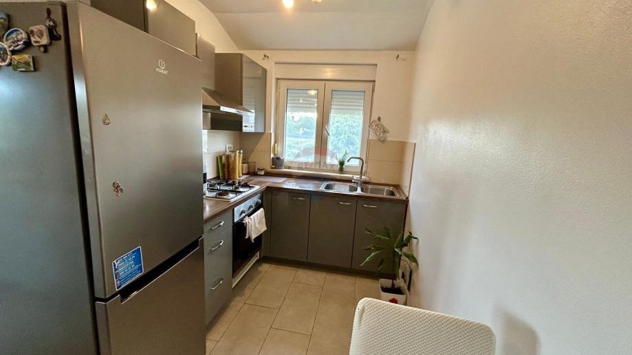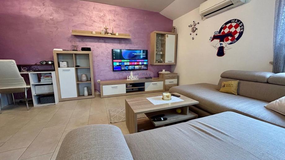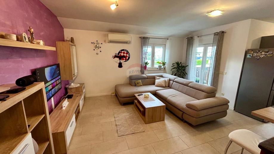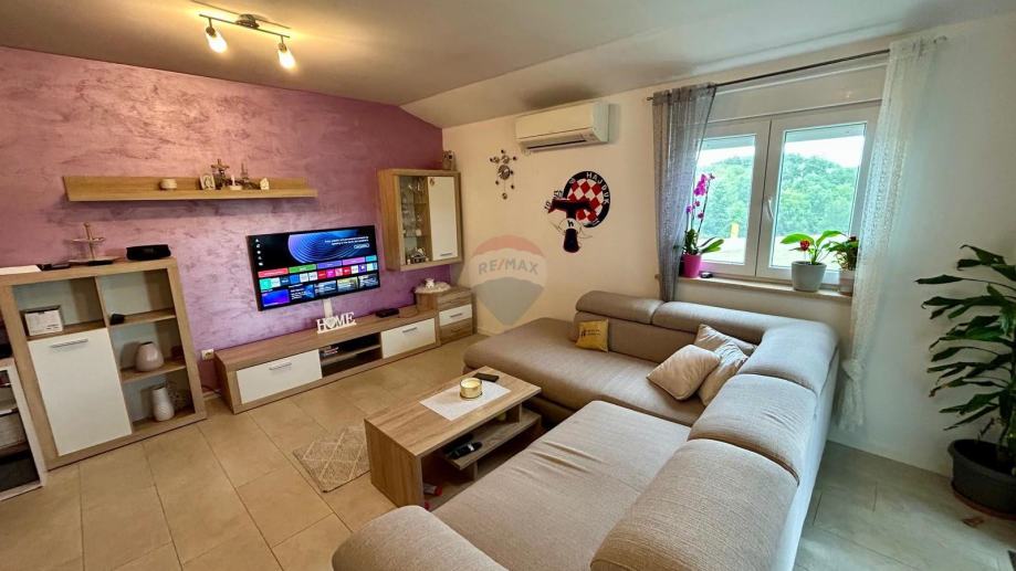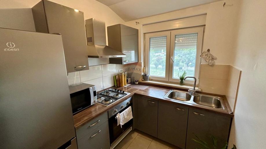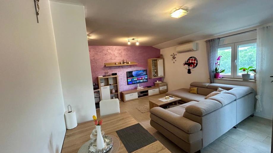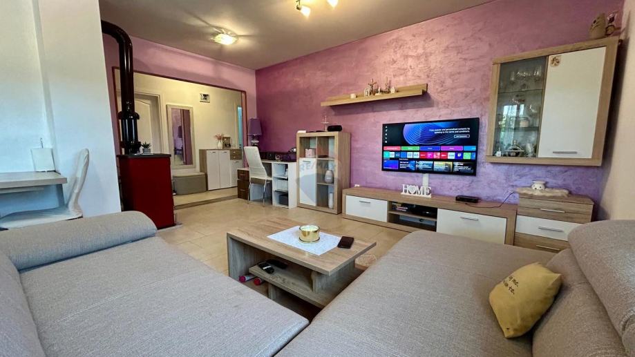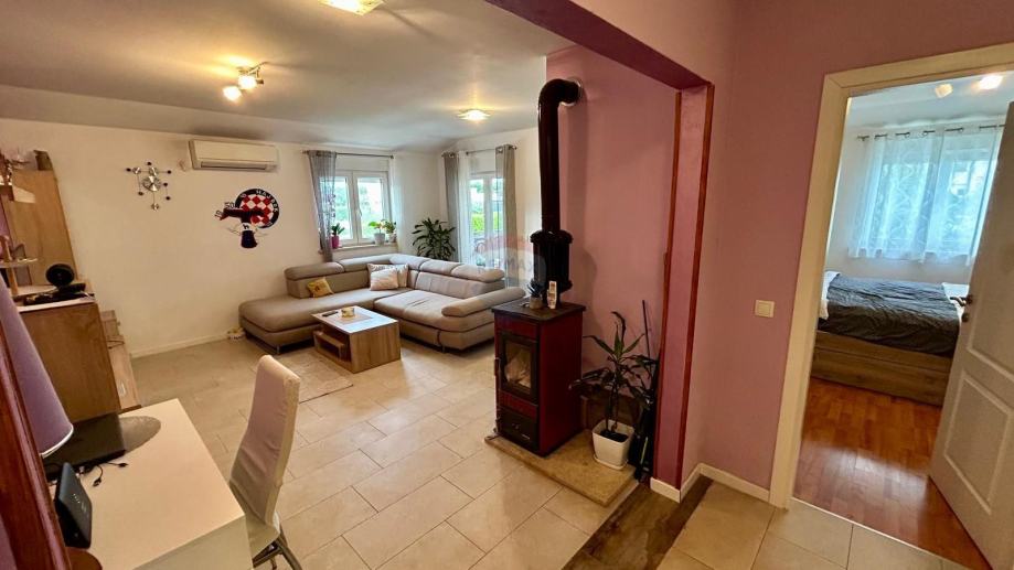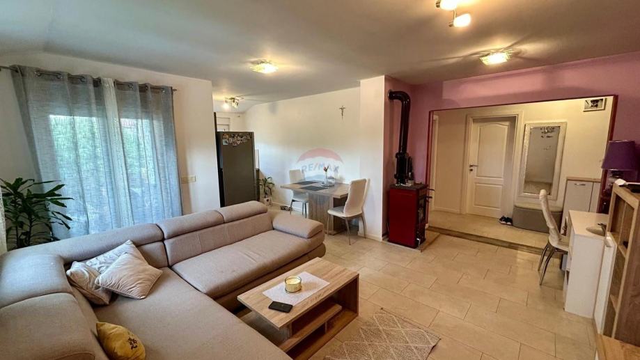 Dvosoban stan kvadrature 65 m2 smješten na pvom katu stambene zgrade sa četiri jedinice. Sastoji se od velikog dnevnog boravka sa kuhinjom u openspace konceptu s izlazom na terasu . Dvije spavaće sobe , hodnika te kupaone. Grijanje rješeno preko peći na drva te klima uređaja.