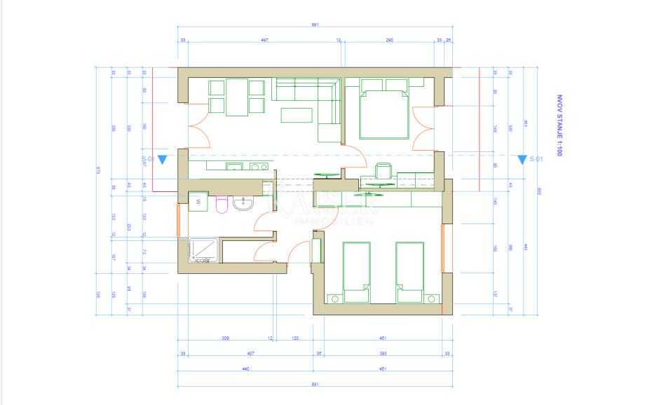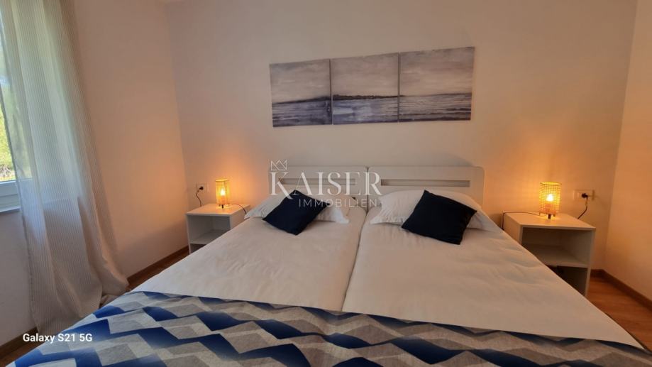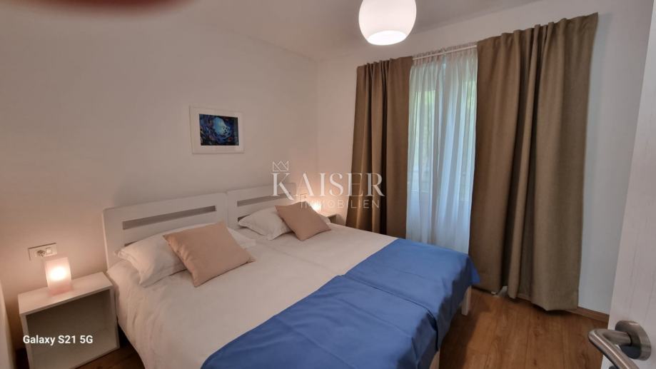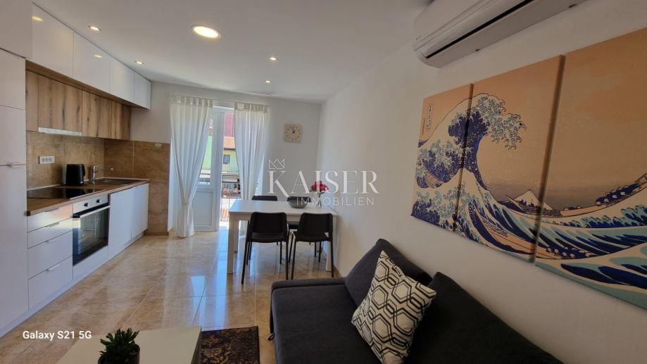 Kaiser Immobilien predstavlja ovu jedinstvenu priliku: stan koji se nalazi u centru grada Novigrada, na 50-tak metara od plaže i pored malog gradskog parka. Svojom pozicijom pruža idealno rješenje za odmor ili stanovanje bez upotrebe automobila jer su vam restorani, trgovine i zabavni sadržaji nadohvat ruke i dostupni za par minuta hoda. Stan se nalazi na drugom katu stambene zgrade i obnovljen je 2023. godine. Sastoji se od kuhinje i dnevnog boravka sa blagovaonicom, dvije spavaće sobe sa pogledom na park, kupaonice i praktične ostave, sve ukupne površine 53m2. Stan ima 2 balkona ukupne površine 8m2 sa prekrasnim pogledom: sa zapadnog se pruža lijep pogled na more, krovove i zvonik crkve, a sa istočnog uživate u zelenilu borova gradskog parka i kroz krošnju vidite more. Stanu pripada izdašno spremište u podrumu zgrade od 9m2. Stan ima klima uređaj, a dnevni boravak sa trpezarijom ima i električno podno grijanje. Prozračan stan uređen je funkcionalnim namještajem svijetle boje, a prodaje se opremljen ili ovisno o dogovoru sa prodavateljem. Stanu pripada parkirno mjesto uz zgradu. Stan ima uredne vlasničke papire.