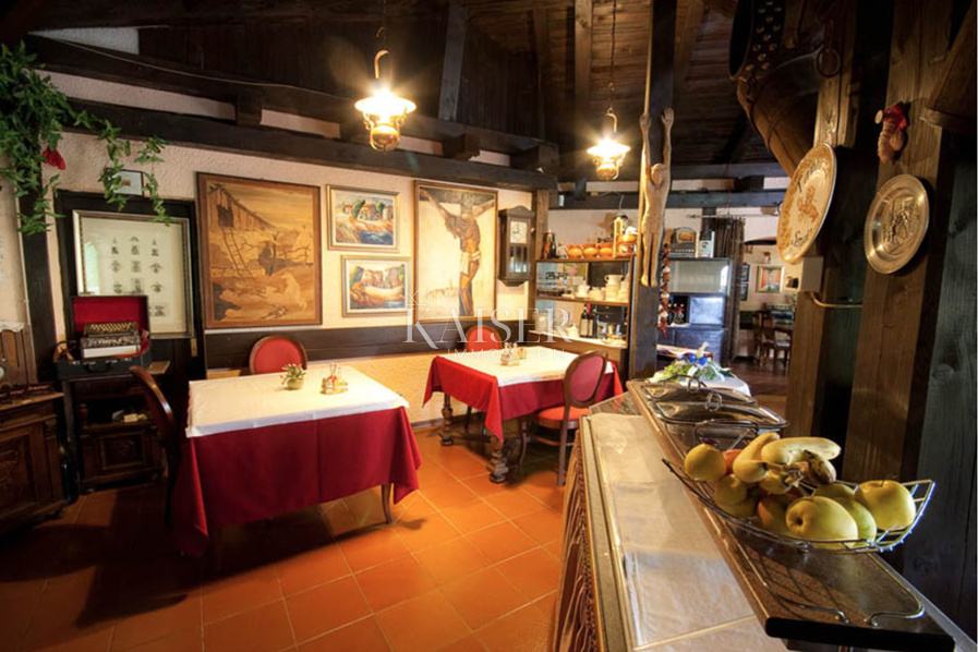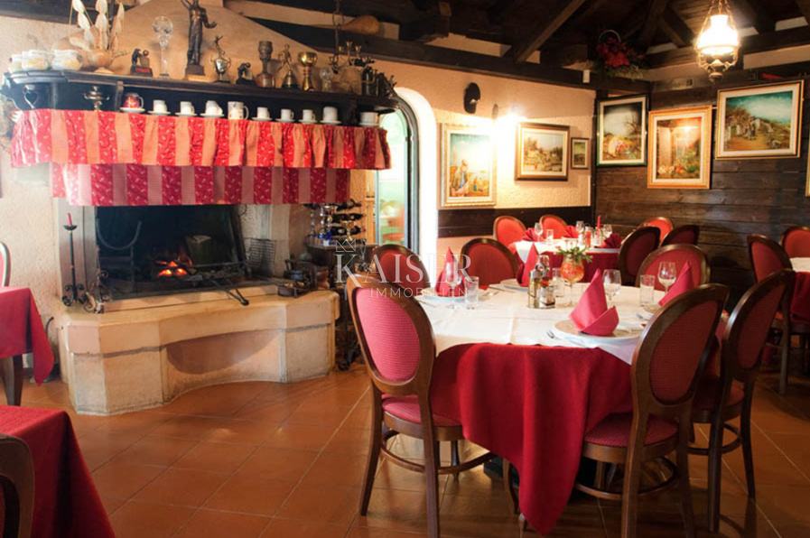 Prekrasan restoran uređen u tradicionalnom stilu ima potpuno funkcionalnu i opremljenu kuhinju i šank za izdavanje pića, a restoran i hotel imaju više skladišnih i ostalih gospodarskih prostora za pružanje usluga u hotelijerstvu i ugostiteljstvu. Restoran ima prekrasnu vanjsku terasu okruženu zelenilom.