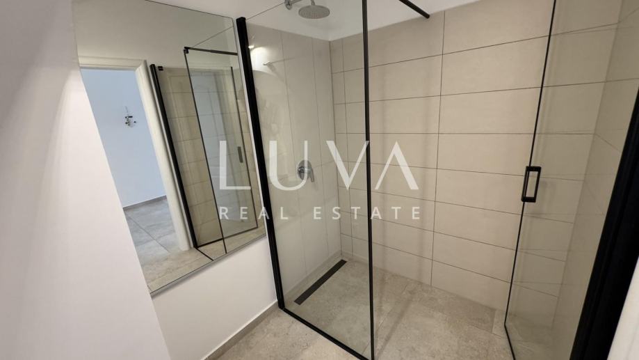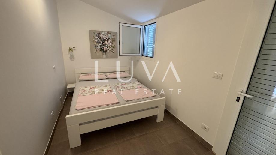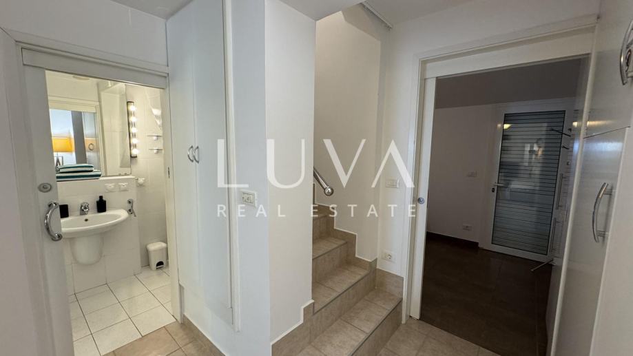 Na drugoj etaži nalazi se master spavaća soba s privatnom kupaonicom i terasa s prekrasnim pogledom na more.