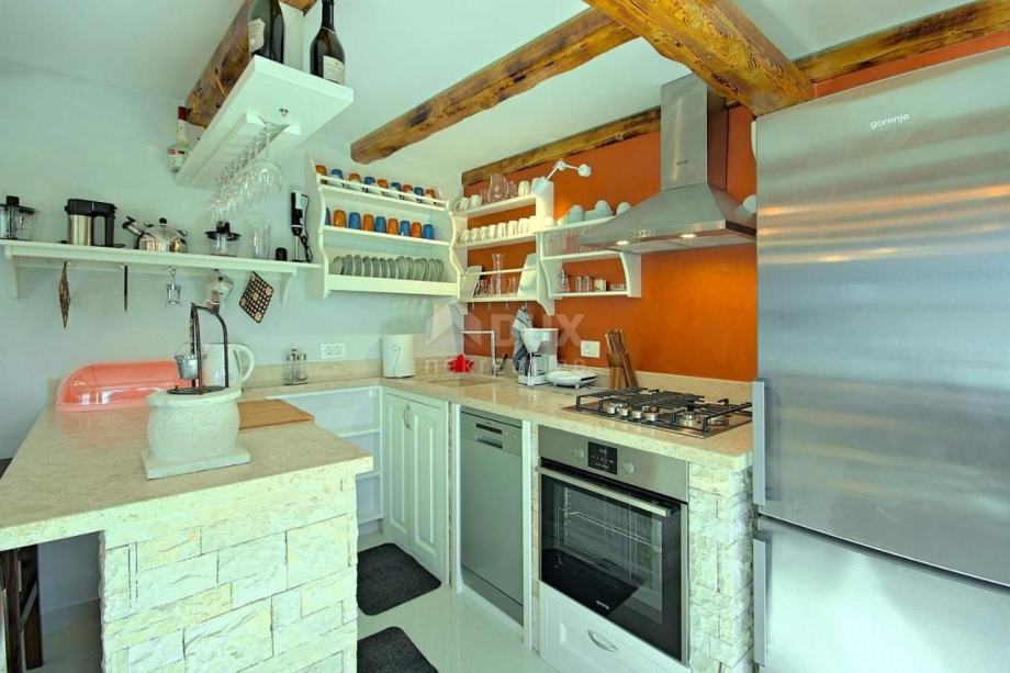 U prizemlju kuće nalazi se open space dnevni boravak sa kuhinjom i blagovaonicom, dvije spavaće sobe, praonica i tri kupaonice od kojih se
