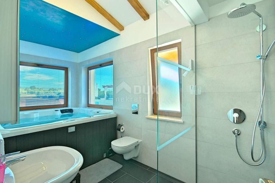 Na katu se nalazi još jedna spavaća soba sa vlastitom kupaonicom, garderobom i izlazom na terasu.