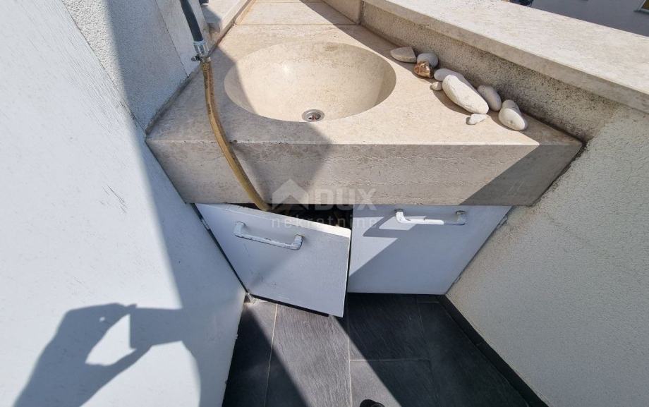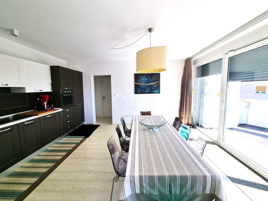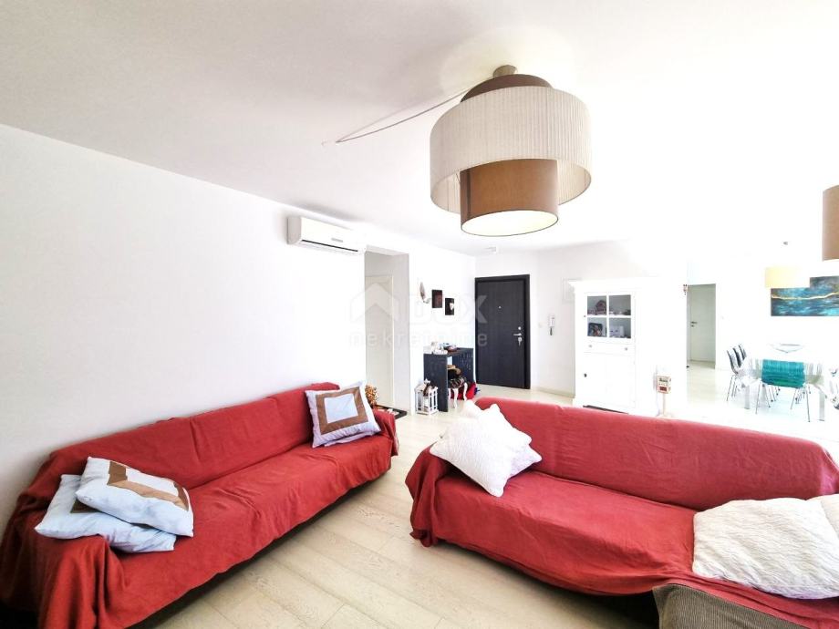 Ovaj prostran stan zauzima zadnji/drugi kat te se sastoji od tri svijetle spavaće sobe, dvije kupaone, prostranog dnevnog boravka koji se elegantno spaja s kuhinjom i blagovaonom. Površina stana od 118,16m2 zajedno s terasom omogućava udoban i prostran životni prostor, obogaćen prirodnim svjetlom i pažljivo odabranim detaljima.