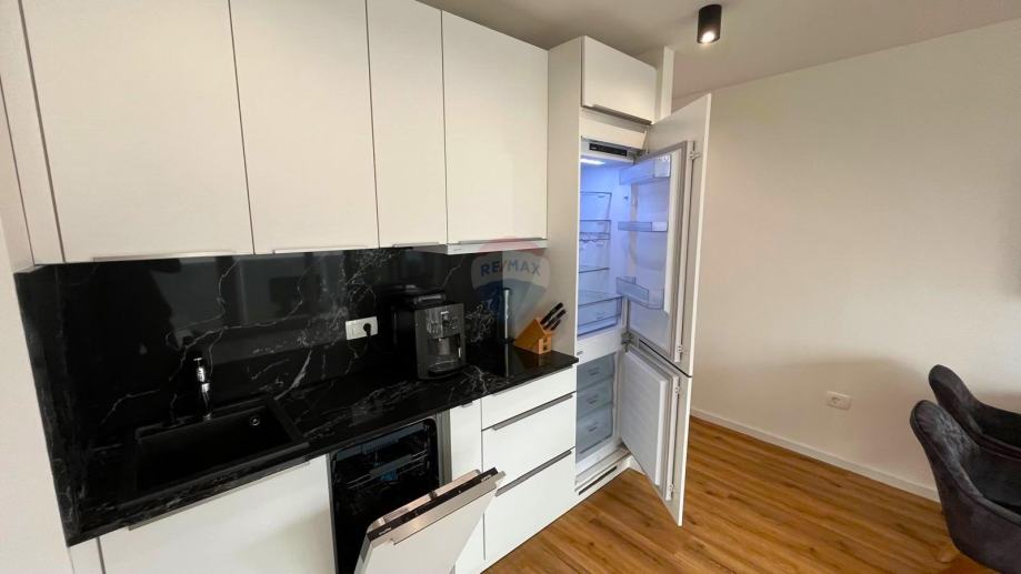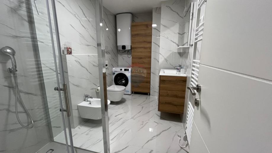Ovaj moderni stan ima sve što vam je potrebno za ugodan život. Podovi su grijani podnim grijanjem, a klimatiziran je na način da svaka soba ima vlastitu unutarnju jedinicu klima uređaja, pružajući vam savršenu temperaturu u svakom trenutku.