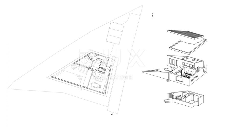Kuću odlikuje kvalitetna gradnja, suvremena arhitektura i moderan dizajn. Stambena površina od 171 m² proteže se kroz suteren i prizemlje.