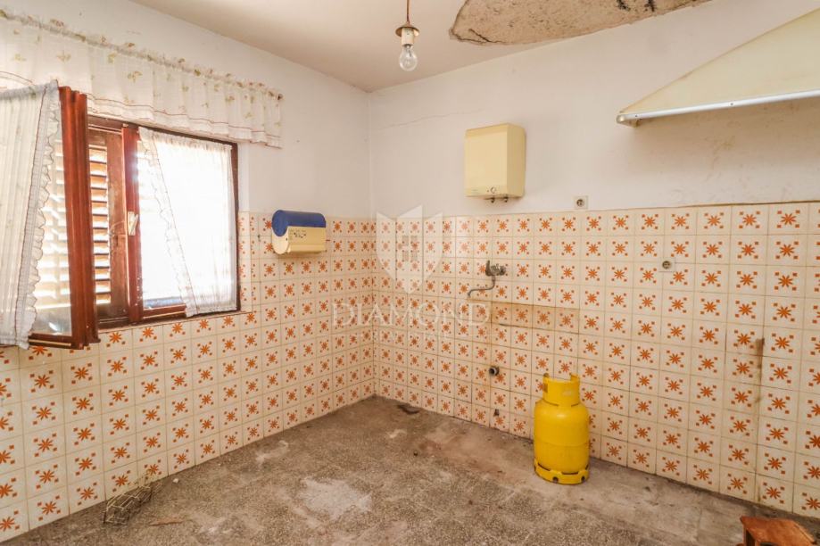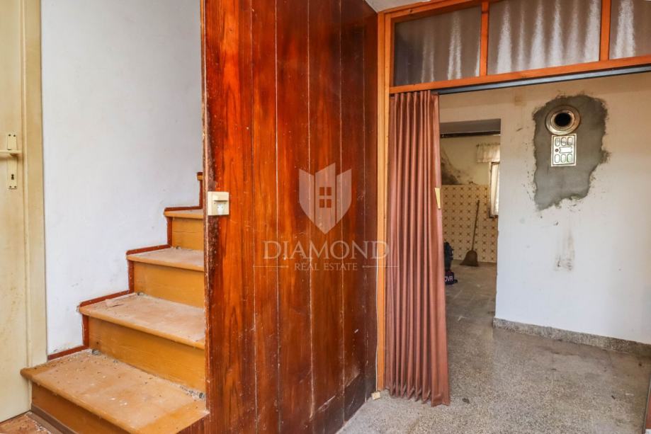 Kuća se prostire preko 131m2 i sastoji se od 3 etaže koje se trenutno sastoje od: dnevne sobe, kuhinje, spavaće sobe, kupaonice, konobe i garaže. Sa druge i treće etaže se pruža spektakularan pogled na more. Kuća je potrebna adaptacije te budućem kupcu pruža mogućnost dobivanja do 4 zasebne stambene jedinice na jedinstvenoj lokaciji, te time osigurava povrat investicije.