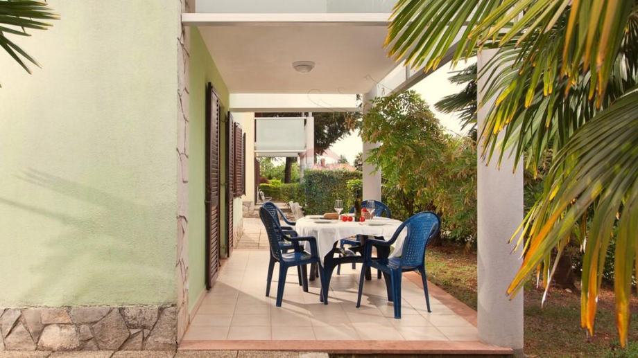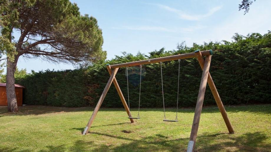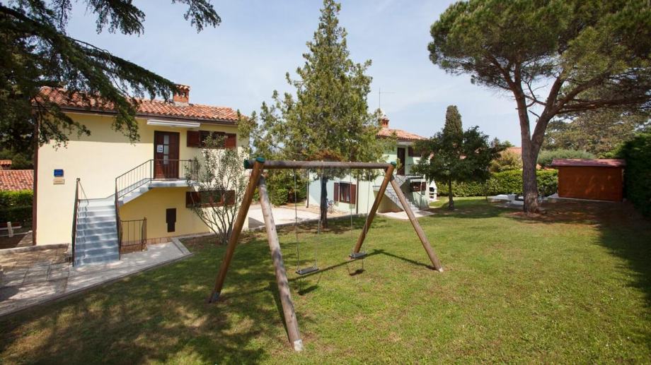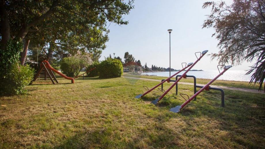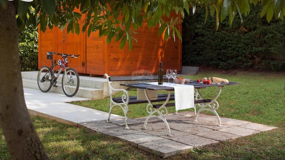 Kuća je okružena zelenilom, a njezina parcela od 369 m2 ograđena je zelenom živicom. Zbog izvanredne lokacije i blizine mora, ova nekretnina je izuzetno atraktivna za turističko iznajmljivanje, ali isto tako privlači kao miran dom za ugodan život.