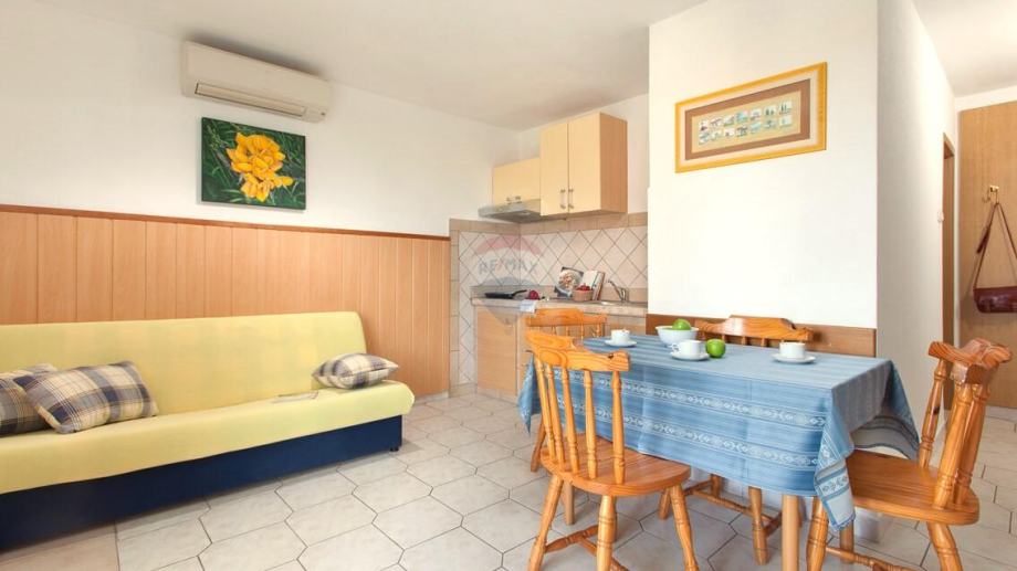 Prizemlje nudi dvije prostrane spavaće sobe, kupaonicu, prozračnu kuhinju, ugodnu blagovaonicu te primamljivu terasu. Kuća je potpuno namještena i opremljena novim terasama, klima uređajima, internetom i televizorom, pružajući svu udobnost potrebnu za savršen odmor.