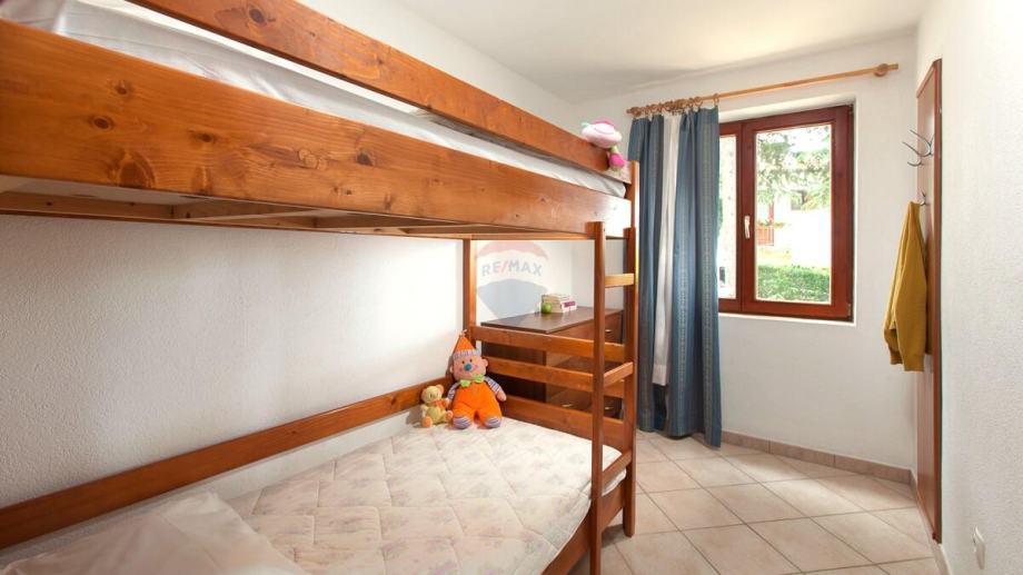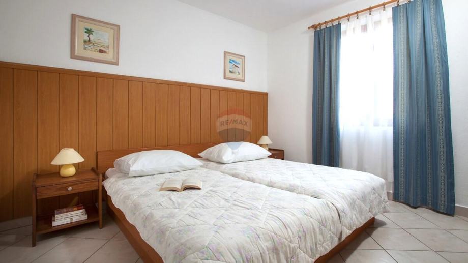 Prizemlje nudi dvije prostrane spavaće sobe, kupaonicu, prozračnu kuhinju, ugodnu blagovaonicu te primamljivu terasu. Kuća je potpuno namještena i opremljena novim terasama, klima uređajima, internetom i televizorom, pružajući svu udobnost potrebnu za savršen odmor.