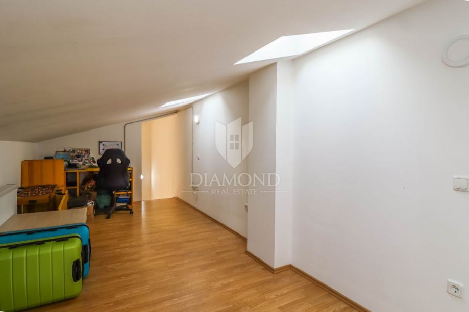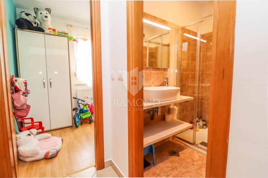 Stan se nalazi na prvom katu stambene zgrade, a površina stana iznosi 67.80 m2 i mansarda od dodatnih 20m2 koja se koristi kao radna soba. Stan je svojim rasporedom idealan za život te se sastoji od dnevnog i noćnog djela. Sastoji se od prostranog dnevnog boravka sa kojeg se izlazi na natkriveni balkon, kuhinje i blagovaonice, 2 spavaće sobe, kupaonice, wc-a, hodnika te ostave. S balkona se pruža pogled na zelenilo i obližnje igrališta. Posebnost ovog stana je konforan kamin koji se nalazi na balkonu. Stan se grije pomoću centralne peći na pelete i radijatorima dok se hladi centralnim klima uređajem. Ispred zgrade se nalazi parkirno mjesto na korištenje.