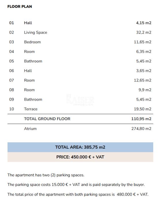 Kupovna cijena uključuje PDV, stoga kupci nisu obvezni plaćati porez na promet nekretnina.