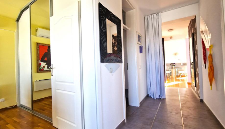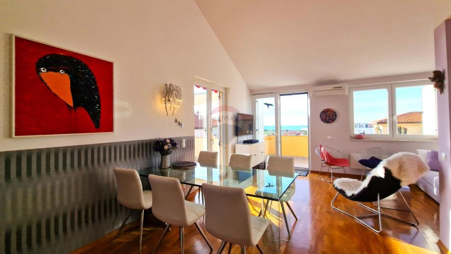 Ovaj stan je savršeni spoj luksuznog uređenja i kvalitete izgradnje smještena u idiličnom okruženju udaljena svega 800 m od mora,plaža,teniskih terena,marine i svih ostalih sadržaja koje Novigrad nudi.