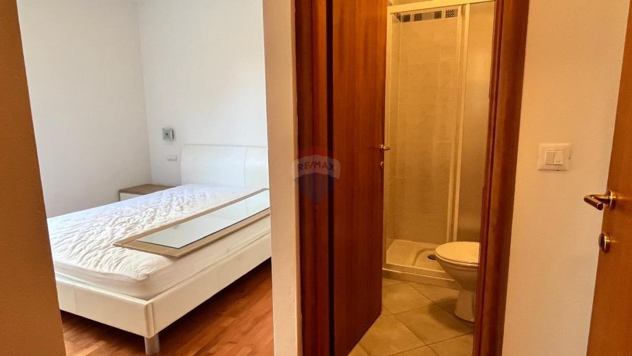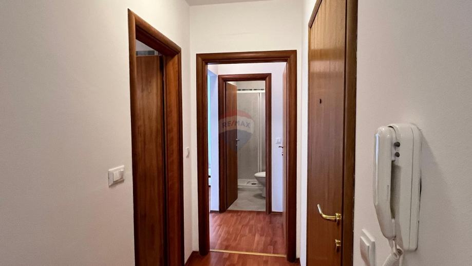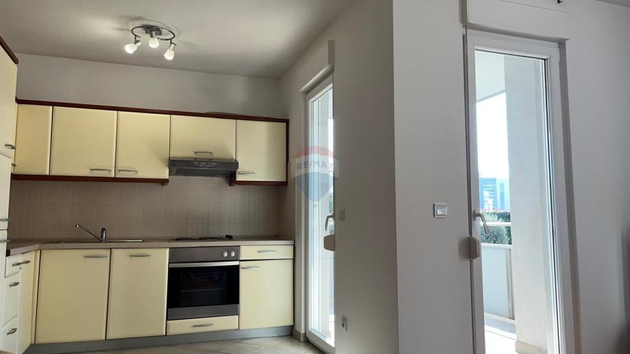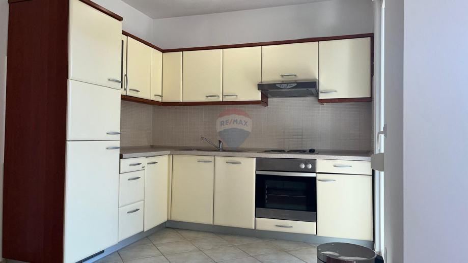 Stan se sastoji od ulaznog hodnika, prostranog dnevnog boravka s kuhinjom i blagovaonicom otvorenog koncepta s dva izlaza na terasu,