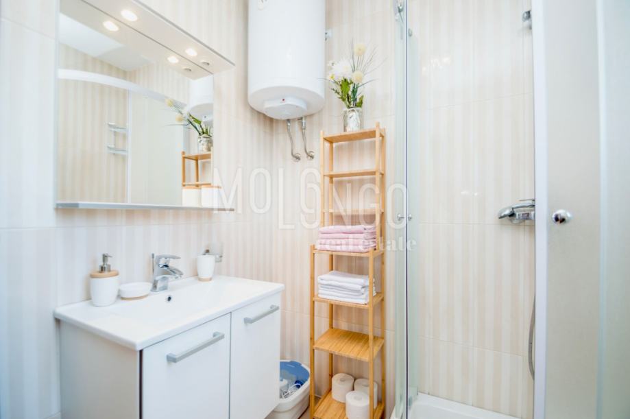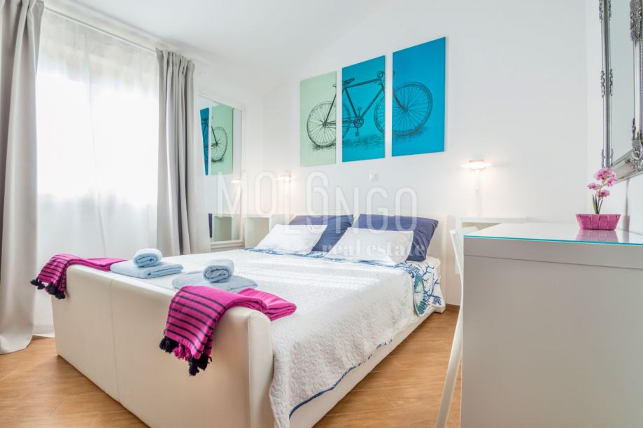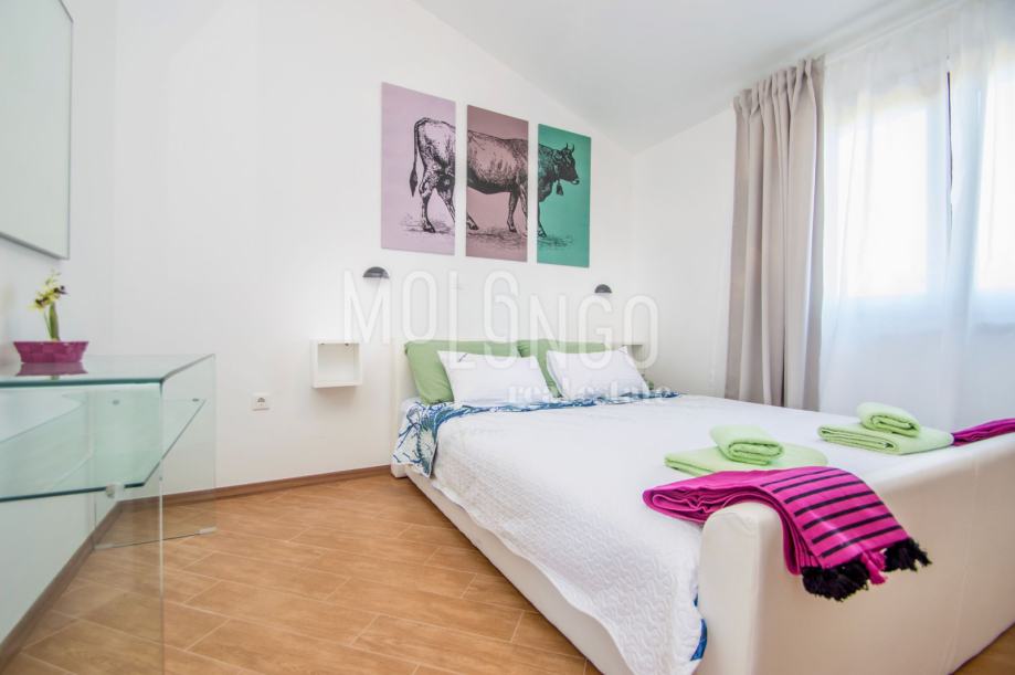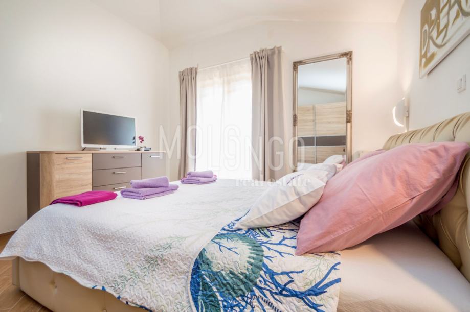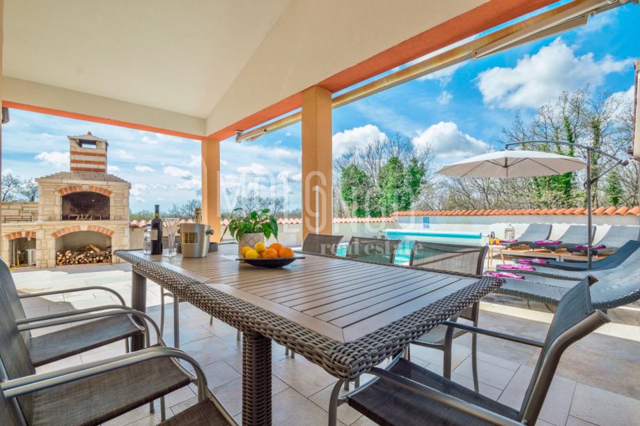 Podjednaku dozu ugode nudi vanjski prostor koji uključuje terasu, roštilj, sunčalište i grijani bazen koji su pogodni za bezbrižna druženja s najbližima.