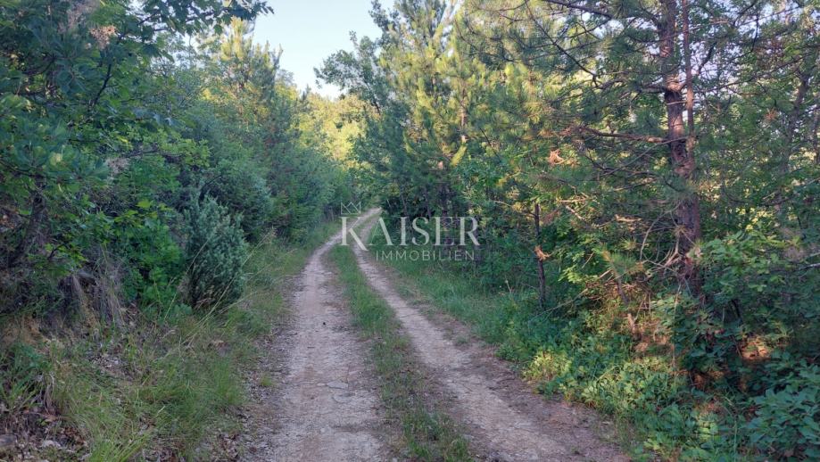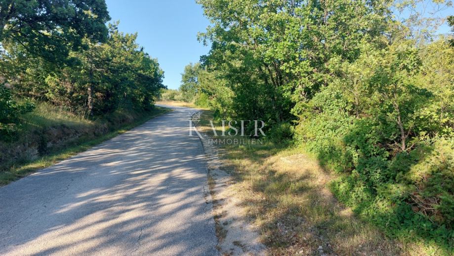 Dvije čestice ukupne površine 24.771 m2 udaljene su 6 km od Buzeta i 10 km od Motovuna. Zemljište je orijentirano prema jugu te pruža osunčanost pogodnu za sve poljoprivredne kulture koje traže puno sunca. Sa zemljišta se pruža prekrasan pogled na unutrašnjost Istre i okolna sela. Zemljište je trenutno obrasla šumom, ali mu je moguće pristupiti sa više strana ili asfaltiranom cestom ili makadamskim putem te ga privesti svrsi po želji kupca.