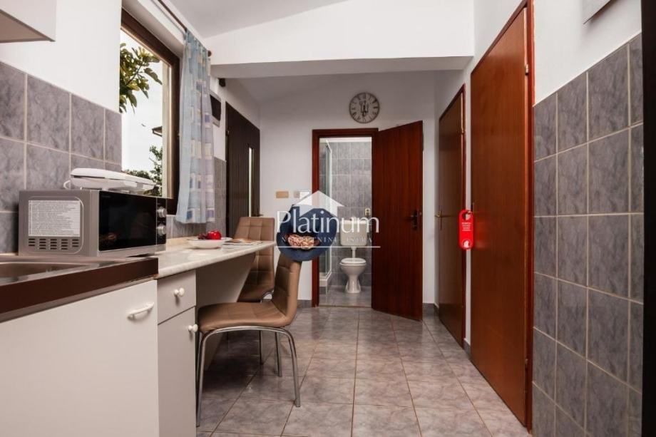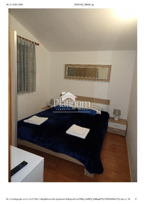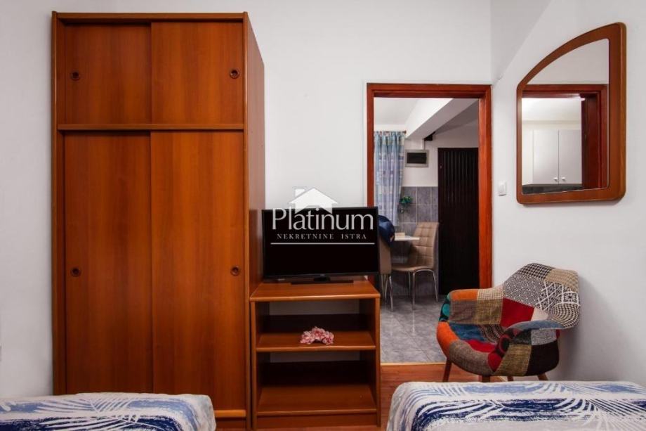 U Valbandonu , nedaleko Fažane , prodaje se obiteljska kuća sa poslovnim prostorom i posebnim apartmanom ukupne površine 258 m2 na zemljištu površine 617m2. Prema etažnom elaboratu nalaze se : u prizemlju zgrade, a koji se sastoji od 2 poslovna prostora, garderobe i kupaonice, ukupne površine 28,70 m2, poslovnog prostora i skladišta ukupne površine 47,45 m2, kuhinje, kupaonice, dvije sobe i loggie, ukupne površine 43,15 m2. Posebnog dijela u prizemlju zgrade a koji se sastoji od pretprostora + stepeništa, kupaonice, kuhinje, dvije sobe i boravka, te na mansardi a koji se sastoji od predprostora + stepeništa, kuhinje, kupaonice, dvije sobe, boravka i loggie, ukupne površine 129,70 m2.