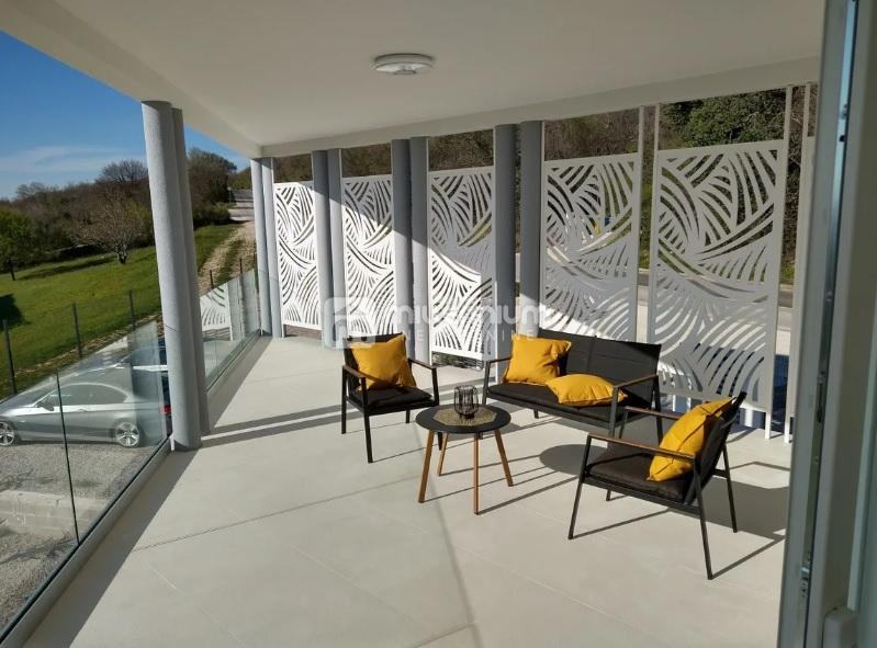 Prodaje se moderna kuća smještena u Trgetu, slikovitom mjestu u Istri koja nudi suvremeni dizajn uz brojne praktične značajke. Svojim strateškim položajem pruža pogled na more u daljini, udaljeno oko 2 km, što dodaje posebnu čar ovom posjedu. Arhitektura kuće odražava suvremene trendove s otvorenim prostorima i visokokvalitetnim završnim obradama.