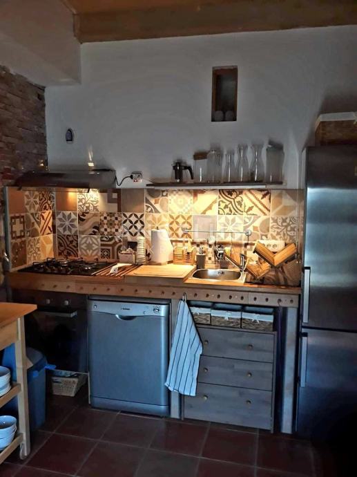 The house consists of a ground floor and an upper floor and has a total area of 170m2. Part of the house is decorated in an antique and rustic style, while the other part is decorated in a more modern style. The house has two spacious covered terraces. The house has two bathrooms (on the ground floor there is a shower, while on the first floor there is a bathtub) and a kitchen with a dining room and a living room with access to the terrace. There is parking for several cars next to the house. Heating and cooling on the first floor is with air conditioning, while on the ground floor there are ceiling fans and a modern wood-burning fireplace that creates a special atmosphere in the winter months and heats the space superbly.