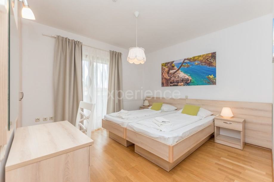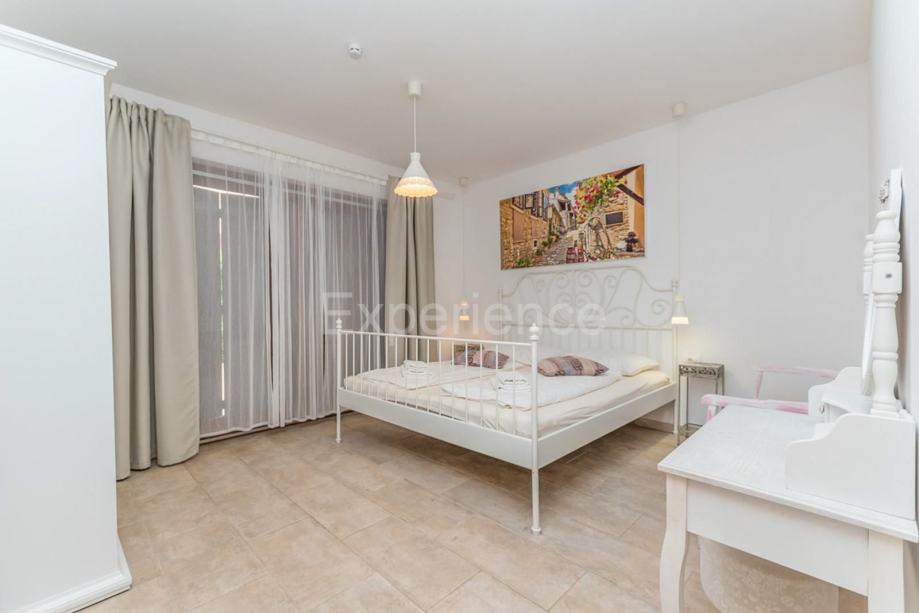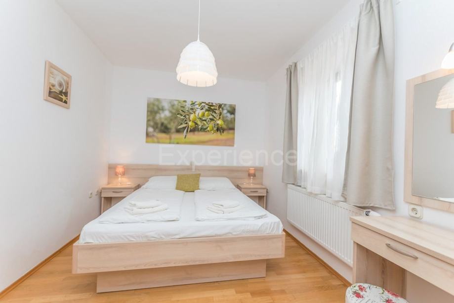EksterijerU pomno uređenom vrtu smješten je bazen (50 m²) s hidromasažom, natkrivena terasa sa ljetnom kuhinjom i roštiljem, te natkriveni parking za dva automobila.
