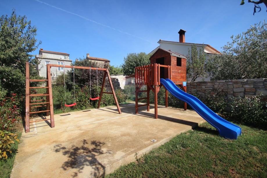 Vanjski zajednički prostori nalaze se unutar privatnog vrta od 1.330 m2 gdje se smjestio bazen s ležaljkama, veliki vrt, dječje igralište i parking za više vozila.