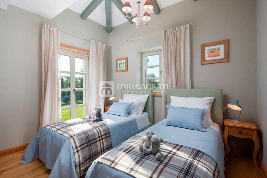 U ponudi je exclusivna kamena vila s bazenom koja je dio projekta s ukupno četiri luksuzne i dizajnerski namještene vile, svaka sa svojom okućnicom i svojim bazenom s hidromasažnim kutom, smještene kraj Kanfanara, 23 km od Poreča i 26 km od Rovinja.