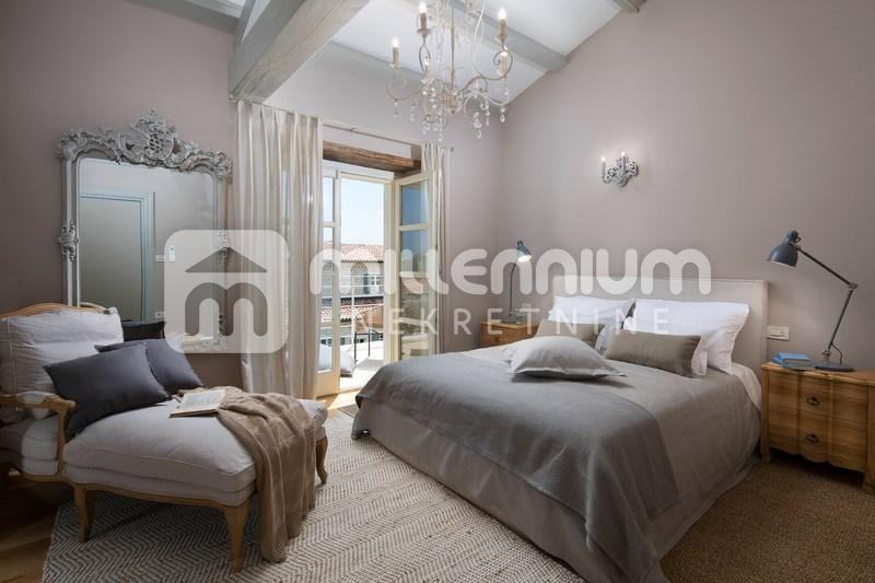 Unutrašnjost je uređena kombinacijom modernog i rustikalnog stila (kameni detalji, stropovi s gredama, kamin) koji odišu toplinom i gostoljubivošću.