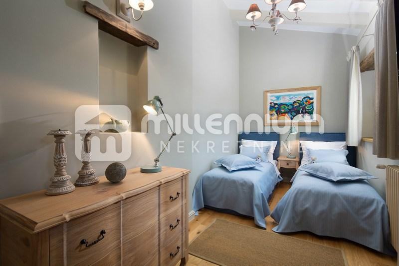 Ova raskošna vila je koncipirana kao dvoetažni prostor - P+1 te je u potpunosti kvalitetno opremljena i namještena.