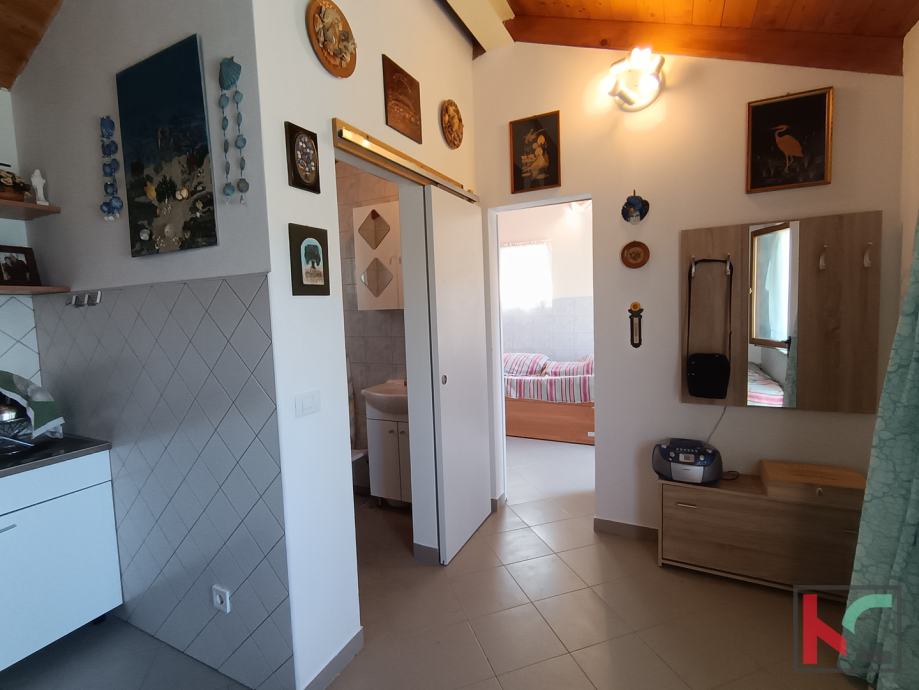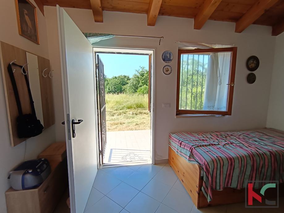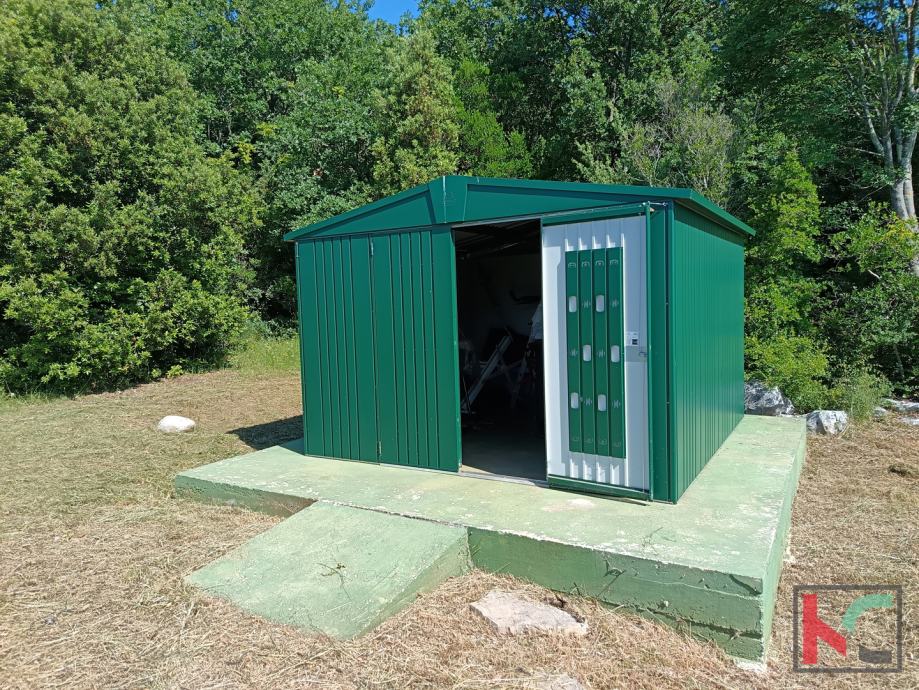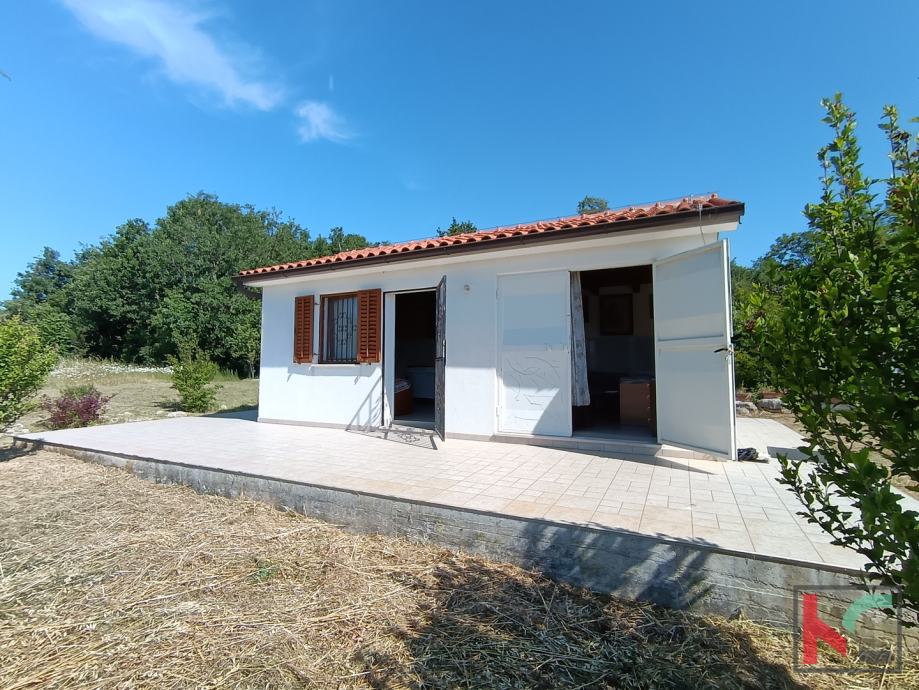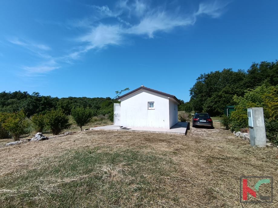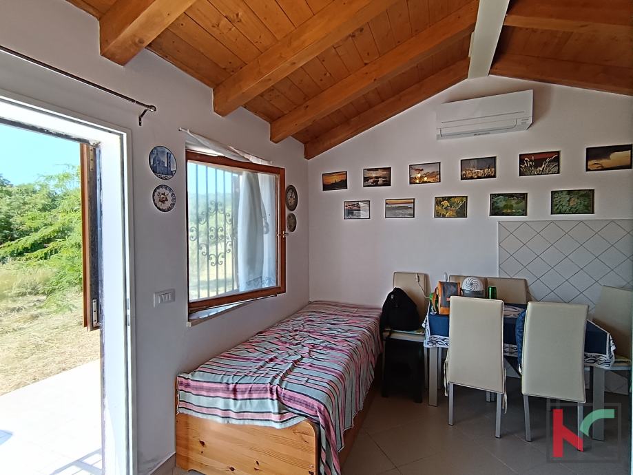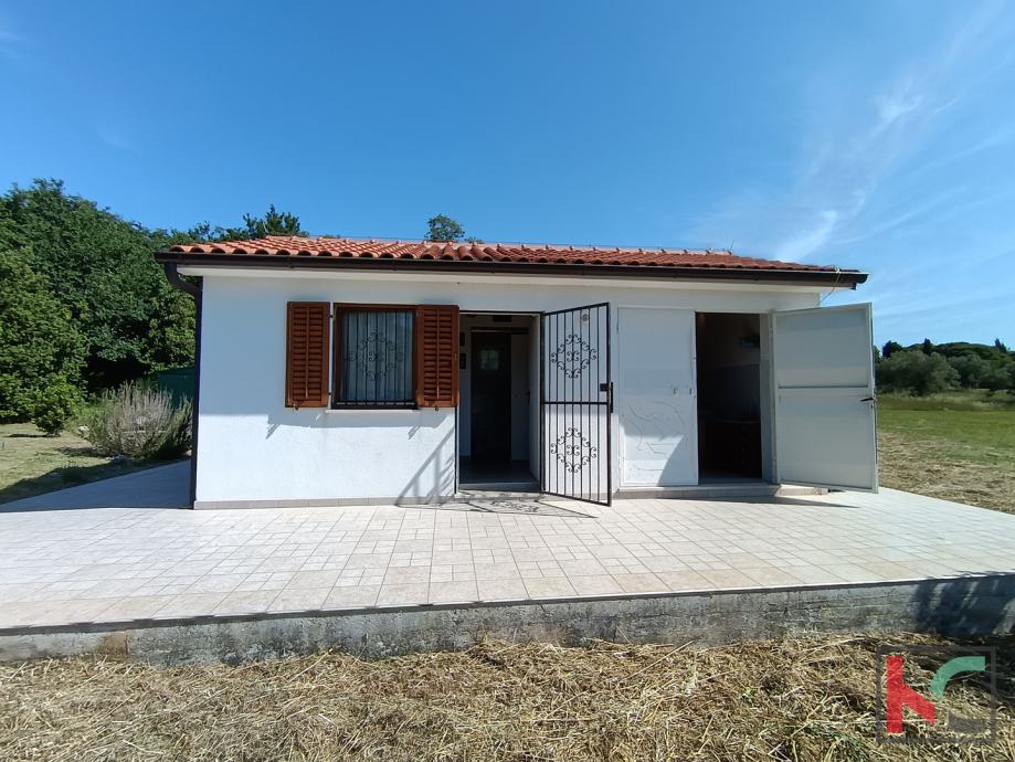 Vikendica površine 30 m2 nalazi se u mirnom području u blizini Rovinja. Kuća nudi sve što je potrebno za ugodan boravak: otvoreni dnevni boravak s kuhinjom, spavaću sobu, kupaonicu i sunčanu terasu s pogledom na prostrano zemljište veličine 25.520 m2. Izgrađena 2015. godine, vikendica je opremljena klimatskim uređajem za grijanje i hlađenje te ima priključke za vodu, struju i septičku jamu. Na posjedu se također nalazi spremište za alat, savršeno za dodatnu organizaciju.