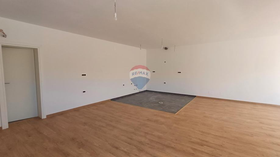 Prizemni dio kuće koji je djelomično ugrađen u teren se sastoji od velikog dnevnog prostora gdje će biti kuhinja na L i dnevni boravak te stepenište za odlazak na kat, spremište i jedan sanitarni čvor.