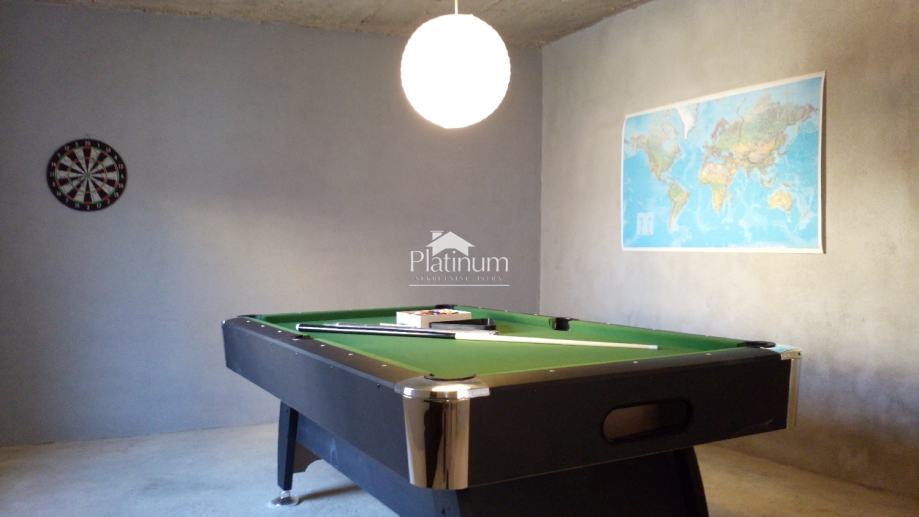 U vanjskom dijelu, atriju nalazi se bazen, a tu je posebna prostorija s bilijarom i ostava za bicikle.