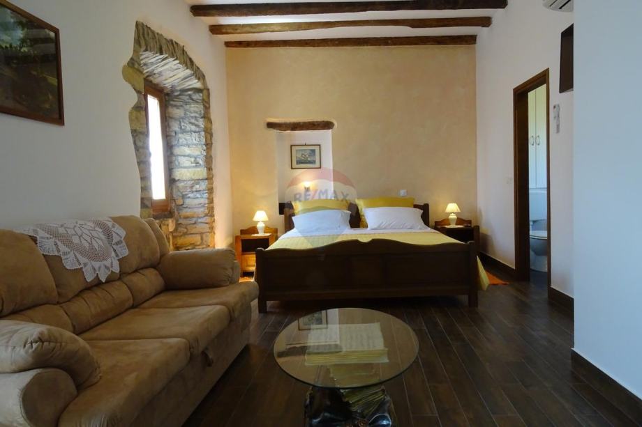 Unutrašnjost kuće vlasnici su ostavili u izvornom kamenom istarskom stilu.