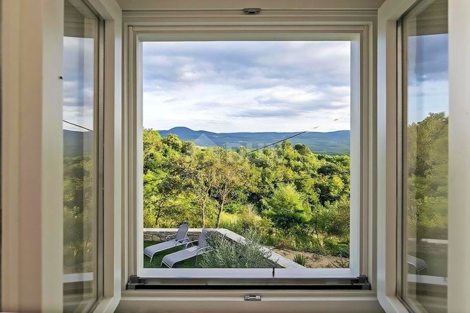 Nedaleko tog čarobnog gradića, u samom srcu Istre u dolini rijeke Mirne podno Motovuna na prodaju je dizajnerska kamena kuća s bazenom.