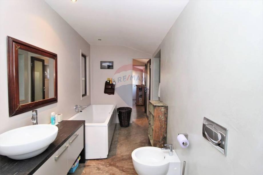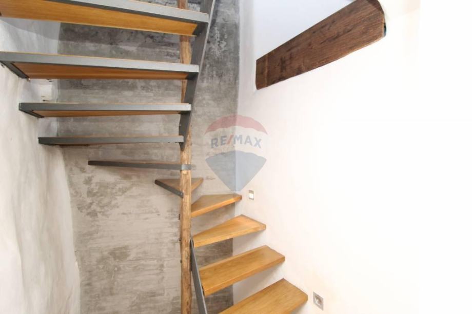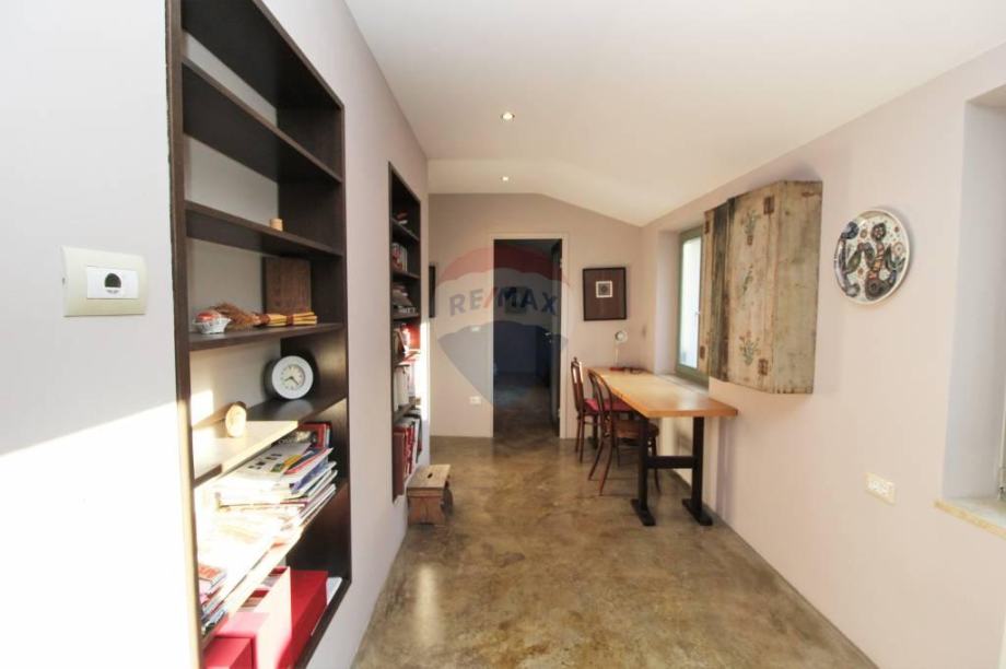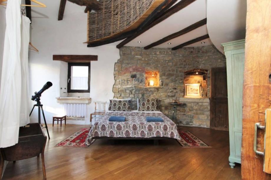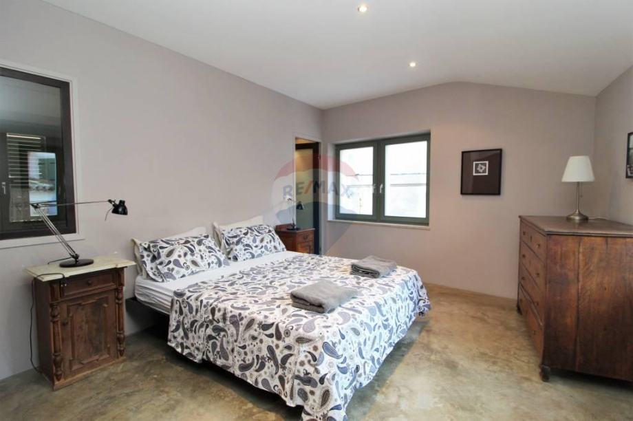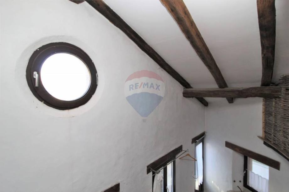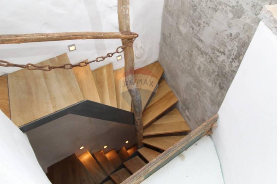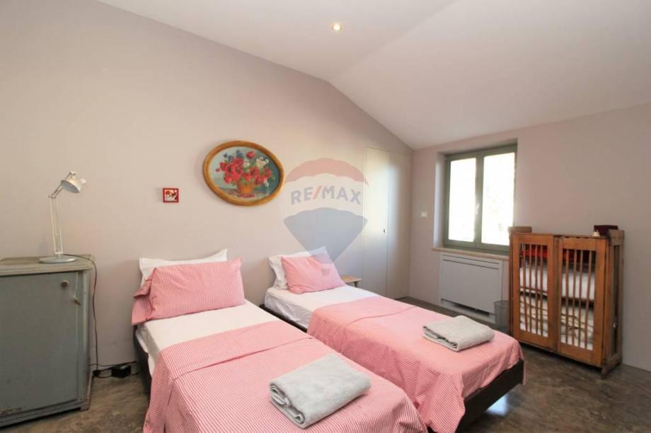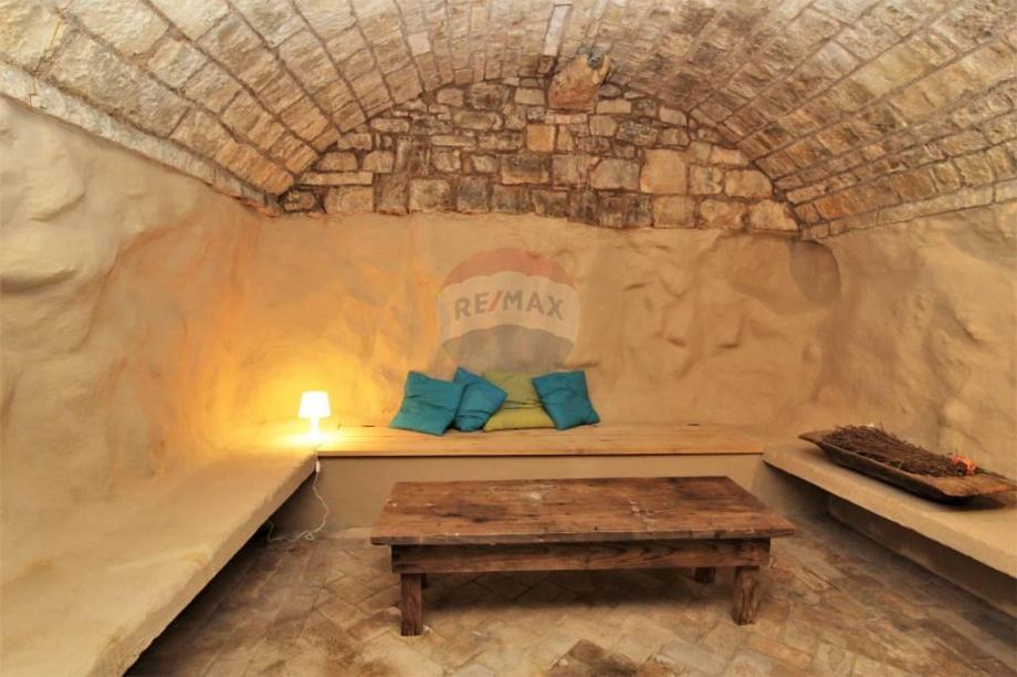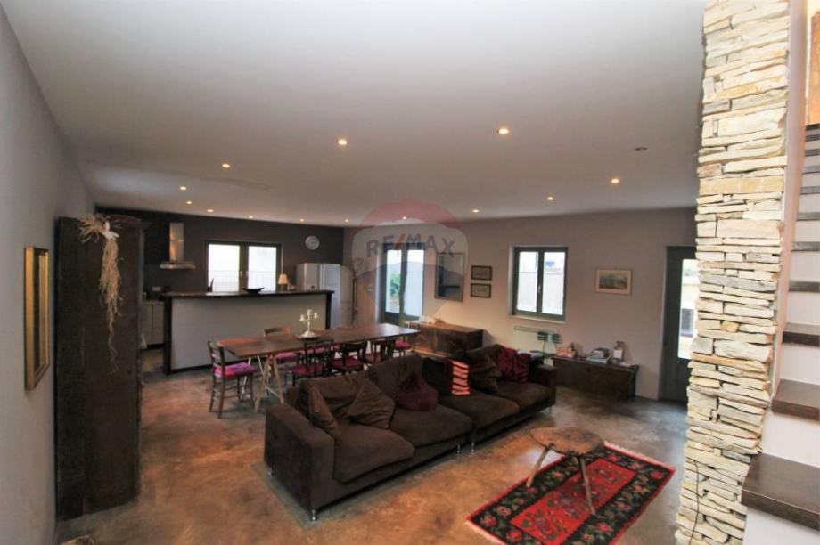 U srcu Istre u malom srednjovjekovnom brdovitom mjestu, između kamenom popločanih ulica i gradskih zidina smještene su ove dvije vrlo zanimljive i posebne kuće. Povezane su zajedničkim kamenim dvorištem, gdje je smješten starinski bunar, kamena klupa, te manji jedinstveni kameni bazen/jacuzzi. Manja kuća ima ulaz i sa glavne ceste, te se cijela prizemna etaža vodi kao poslovni prostor. Sve odiše ugodom uz mnoštvo istarskih detalja, evidentno je da se izuzetno pazilo na svaki detalj, kuća je sređena sa puno pažnje i ukusa. Manja se kuća sastoji od ukopane stare cisterne preuređene u prostoriju za opuštanje i dnevni boravak U prizemlju nalazi se blagovaona i kuhinja, te manja ostava.Drvenim se stepenicama stiže do 1.kata gdje se smjestila stilizirana spavaća soba i kupaonica. Dalje se stepenicama stiže do mansarde gdje je još jedna soba i kupaonica.U kući je podno grijanje izvedeno na svim betonskim podovima. Veća se kuća sastoji od velike prostrane blagovaone sa kaminom, te moderno opremljene kuhinje. koja sigurno zadovoljava svojom funkcionalnošću. Na prvom se katu nalaze dvije spavaće sobe, te kupaonica i toalet.Kuće se prodaju kao jedna cjelina.Izuzetno maštovita i interesantna nekretnina kako za bavljenje turizmom tako i za cjelogodišnji boravak za sve koji se žele povući od gradskog meteža i buke u mirno i idilično mjesto.