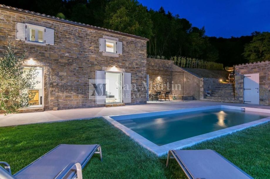 U lijepom mirnom mjestu nasuprot Motovuna na prodaju je prekrasna kamena kuća ukupne površine 90 m2. Kuća se smjestila na parceli od 1234 m2 te se prostire na dvije etaže. Prizemlje se sastoji od ulaznog hodnika, dnevnog boravka, kuhinje i blagovaone, toaleta za goste te saune. A na prvom katu su se smjestile dvije spavaće sobe svaka sa vlastitom kupaonom.