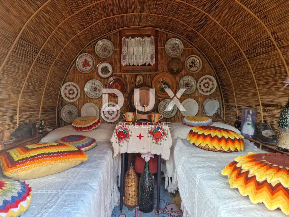 Prostrana okućnica je u potpunosti ograđena i brižno njegovana i oplemenjena raznim biljem, raslinjem, cvijećem i stablima voćki a dodatan šarm pruža autohtona šterna (cisterna za vodu) uz kuću.