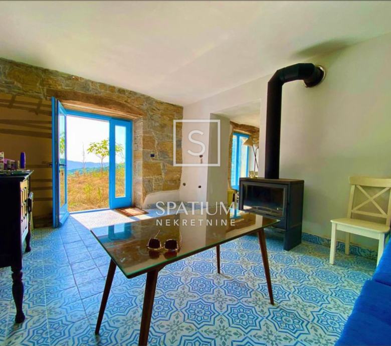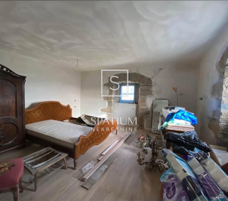 Kamena kuća od 160 m2 u visokom roh-bau stanju s postojećim je priključcima za vodu, struju i klimatizaciju. Veći dio kuće je već uređen, uključujući kuhinju, dnevni boravak, spavaću sobu, dvije kupaonice i dodatni WC. Uz glavnu kuću, tu je i zgrada od 70 m2, smještena na parceli od 1008 m2 građevinskog zemljišta. Dodatno, imanje uključuje građevinsko zemljište od 2257 m2 s ucrtanim ruševinama površine 251 m2, idealno za dodatne projekte.
