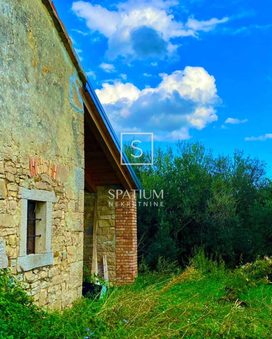 ISTRA, OSLIĆI, u ponudi imamo imanje koje se prostire na oko 4000 m2 građevinskog zemljišta, uključujući dvije kamene građevine i maslinik s pedeset stabala maslina starijih od 200 godina.